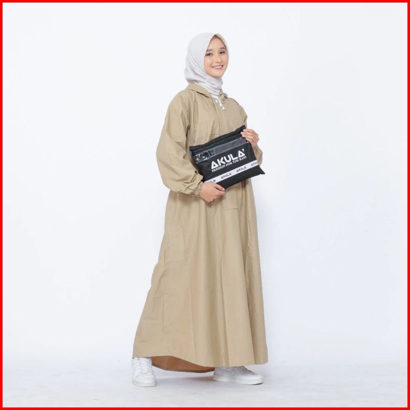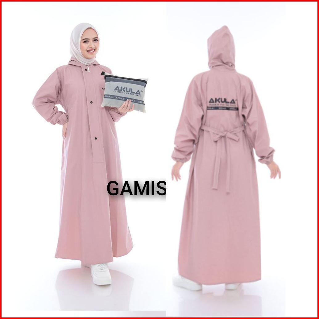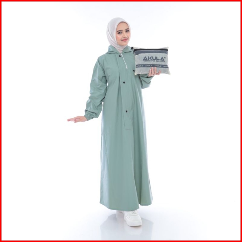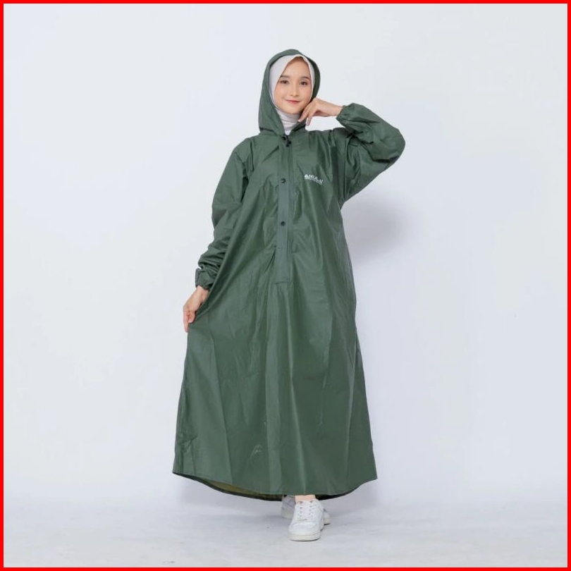 Jas Hujan Wanita Akula Gamis Bahan Pvc Karet Tebal Elastis Anti Rembes