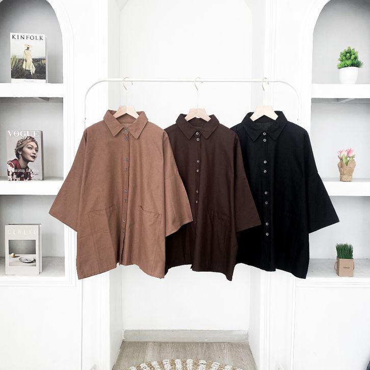 KEMEJA LINEN BASIC LENGAN PANJANG KEMEJA OVERSIZE LINEN WANITA TERLARIS