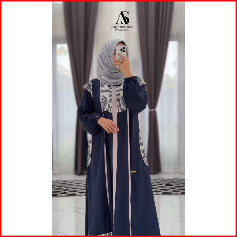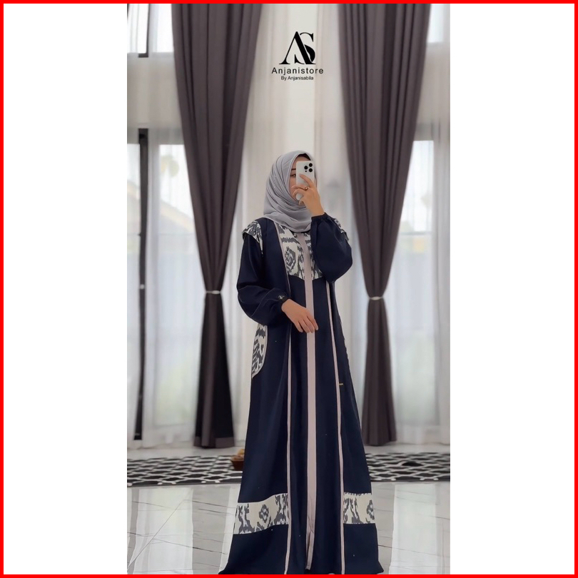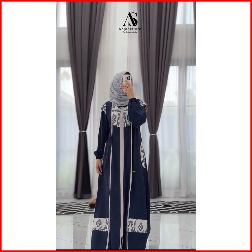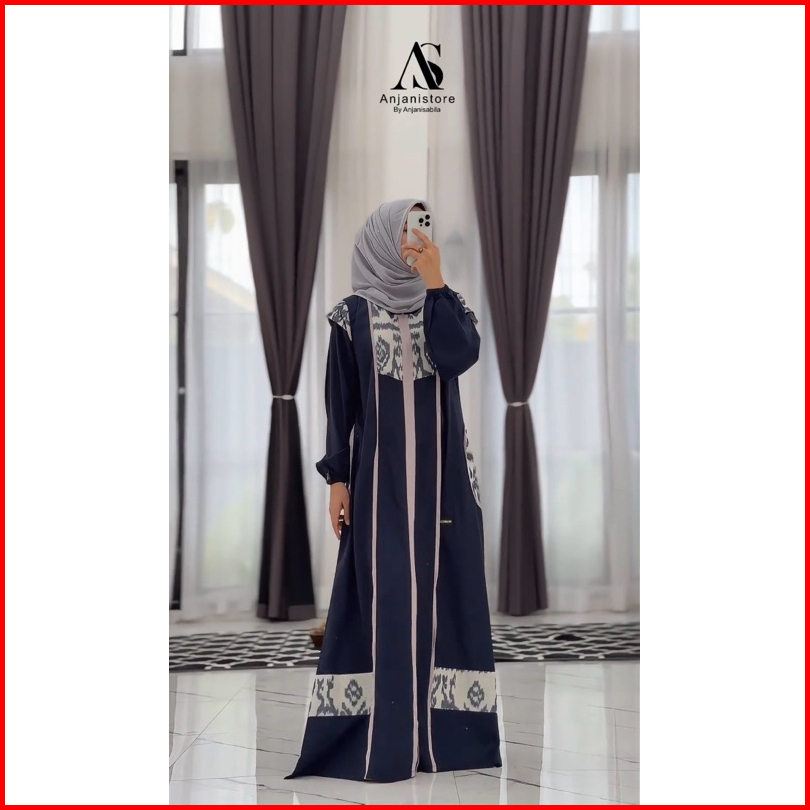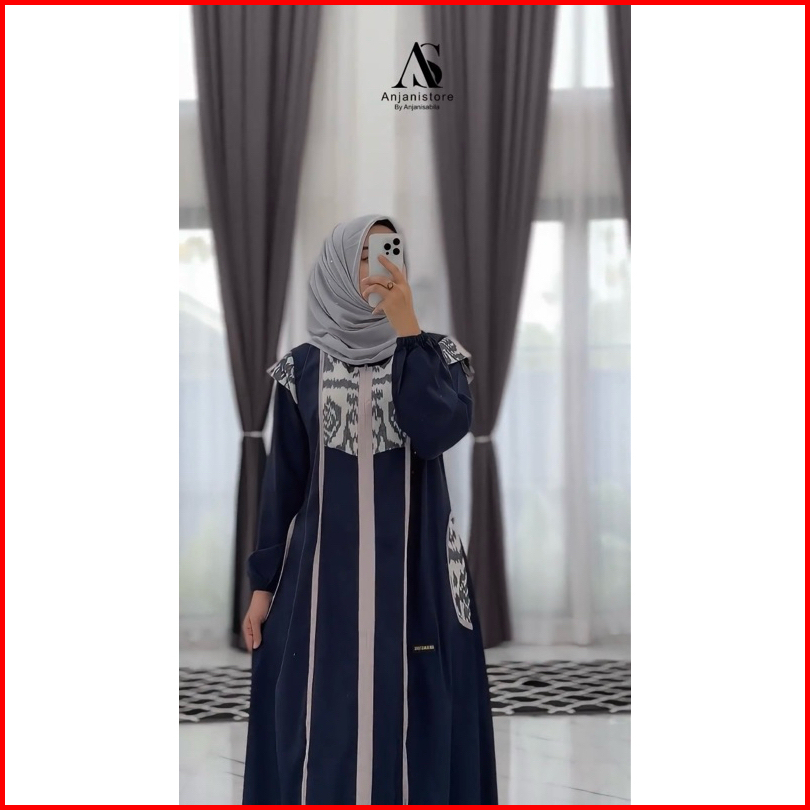 Gamis Dress Navy Etnik Lauching Bahan Twill Uniqlo Original By Anjanistore