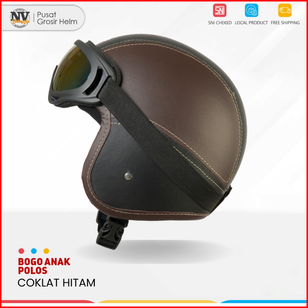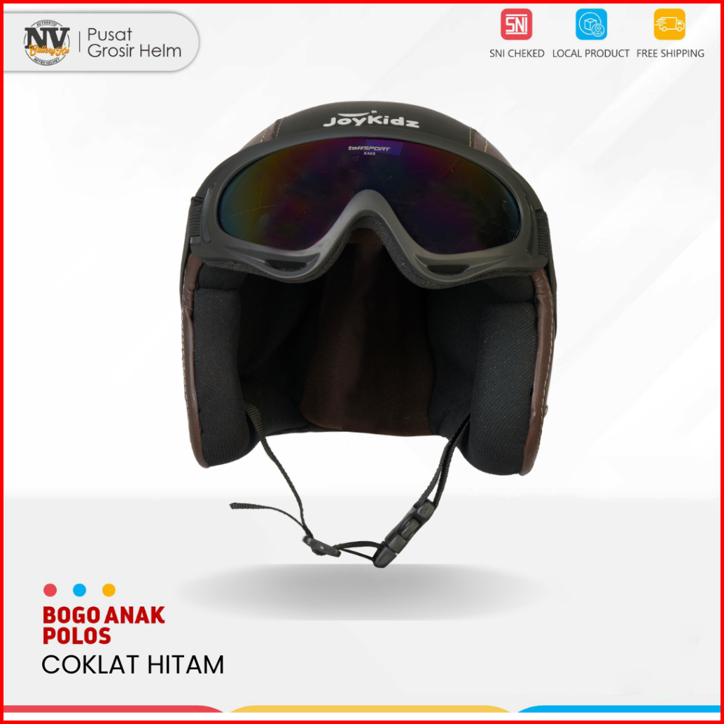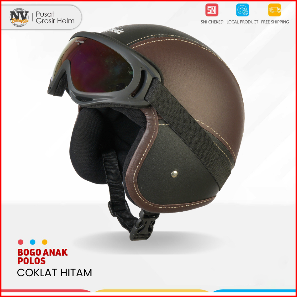 Helm Motor Anak Pororo Retro Usia 2-7 Tahun Coklat Hitam