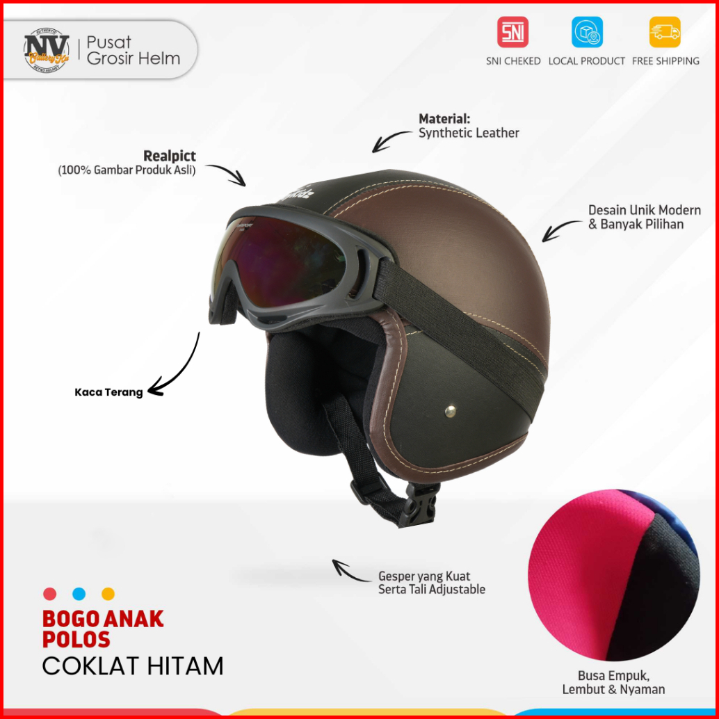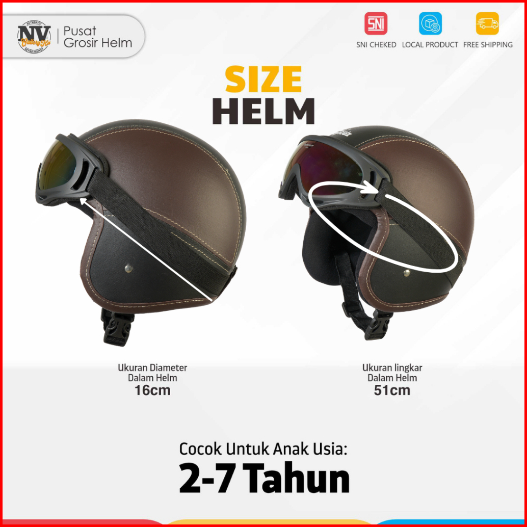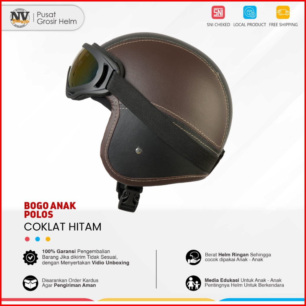 Helm Motor Anak Pororo Retro Usia 2-7 Tahun Coklat Hitam