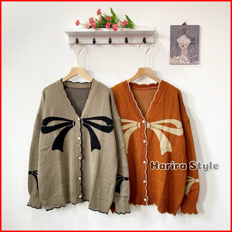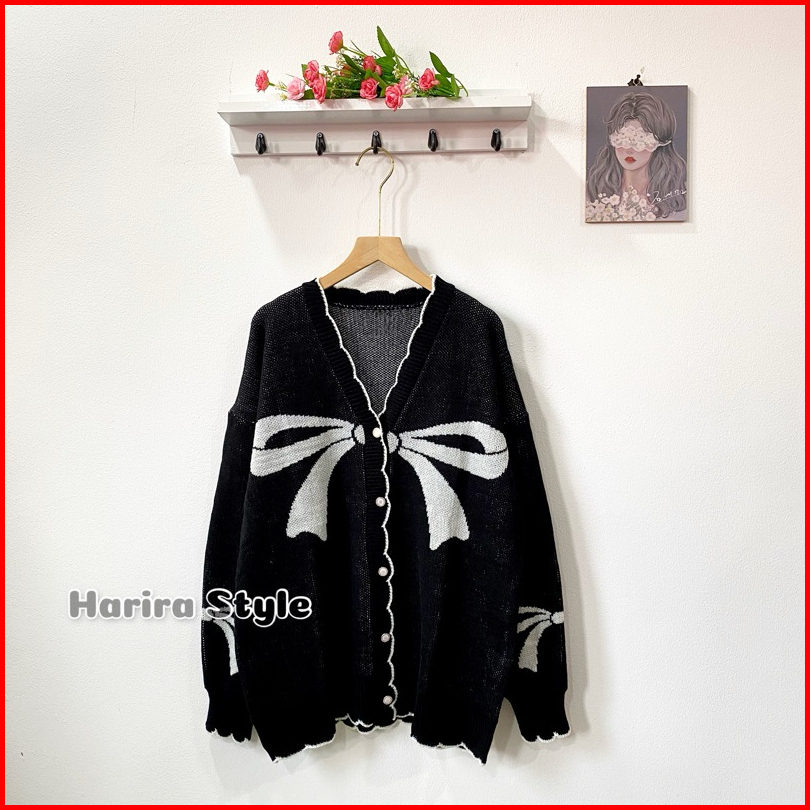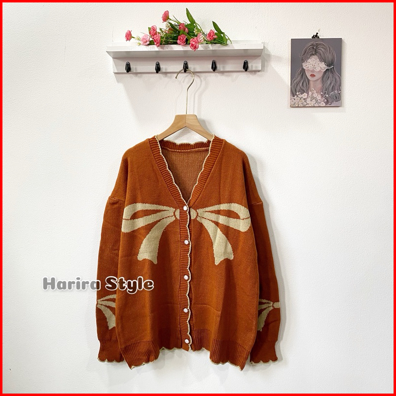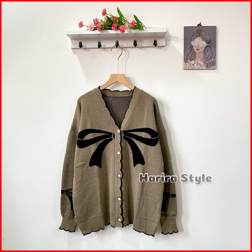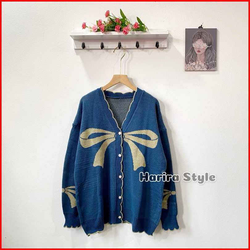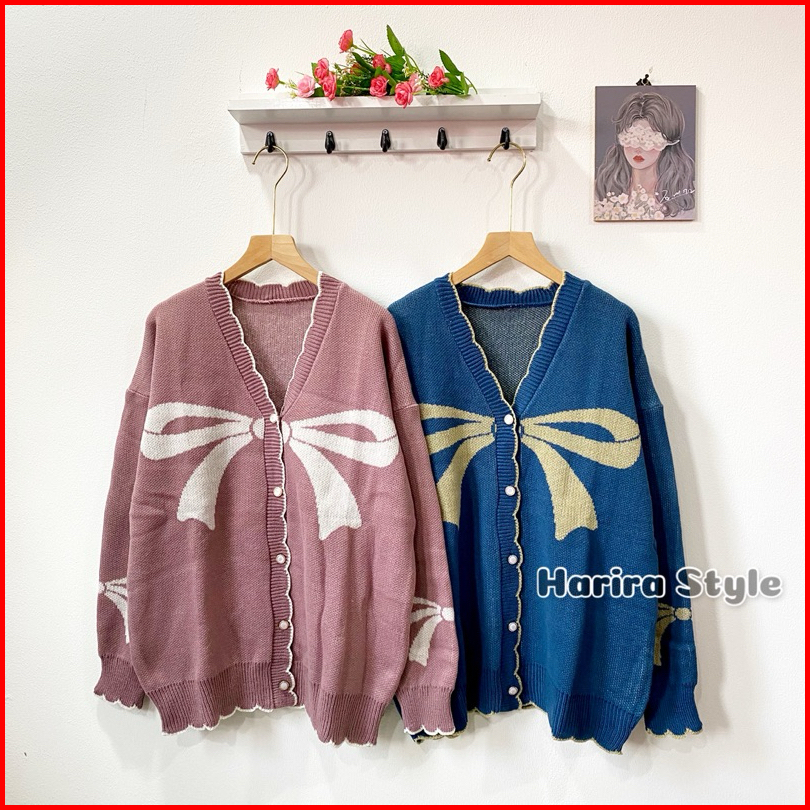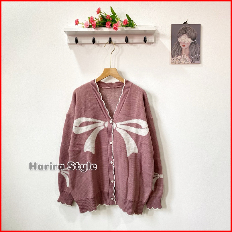 Natasha Cardigan Rajut Oversize Motif Pita From Harira Style