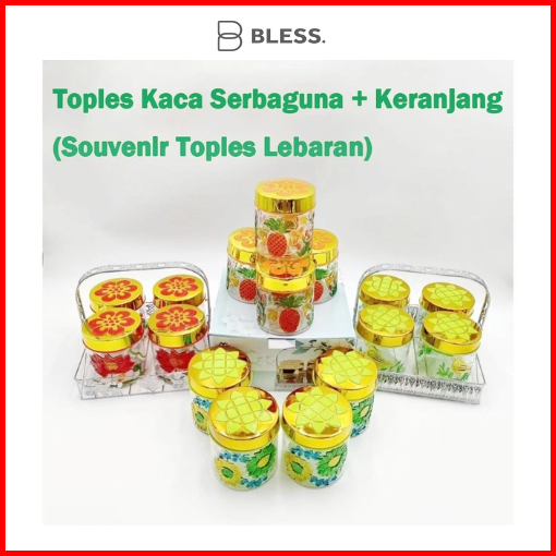 Toples Kaca Serbaguna Dan Keranjang Souvenir Toples Lebaran Motif Set 3pcs 4pcs 5pcs