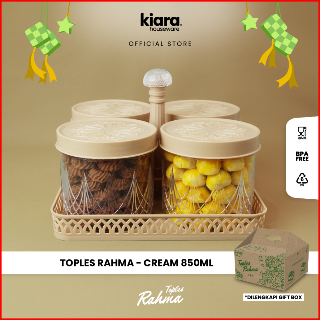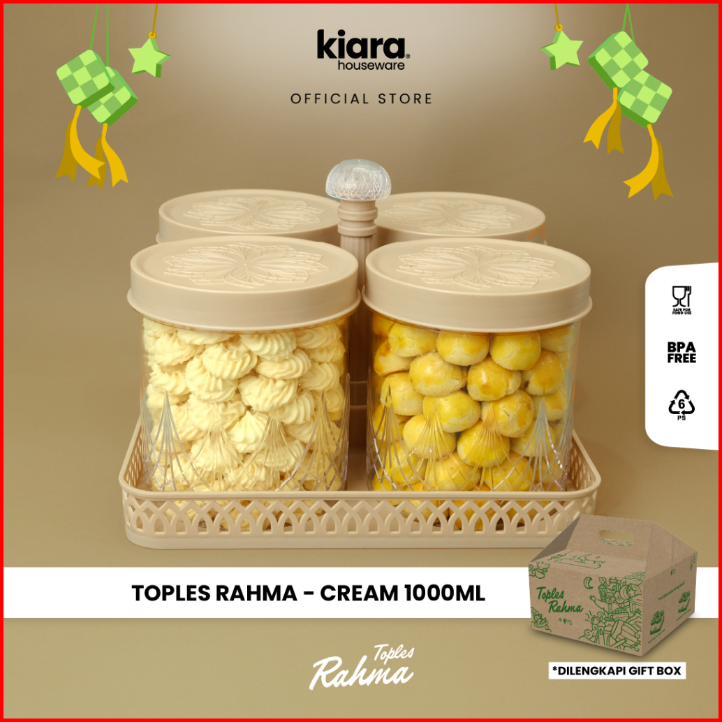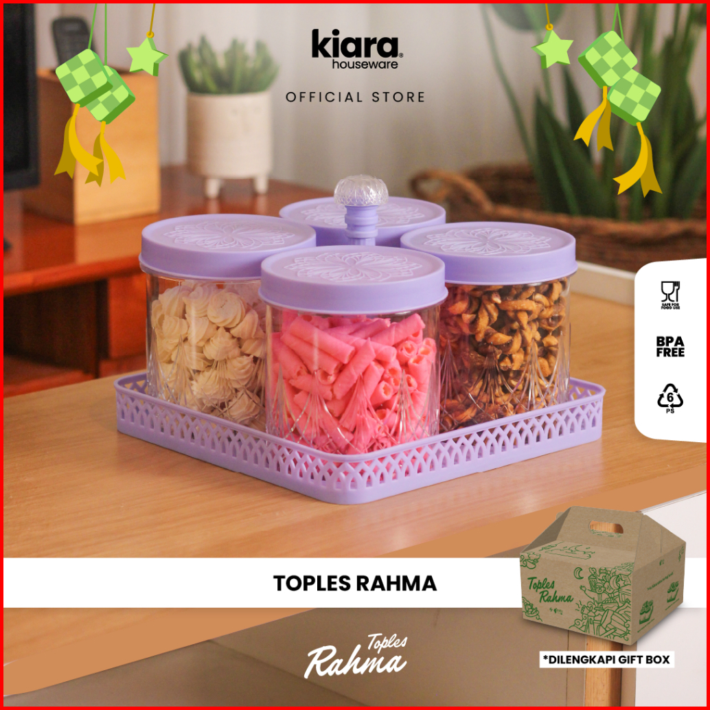 Kiara Houseware Toples Rahma Set Toples Mewah Lebaran Penyimpanan Kue Kering Lebaran Gratis Nampan Dan Gift Box