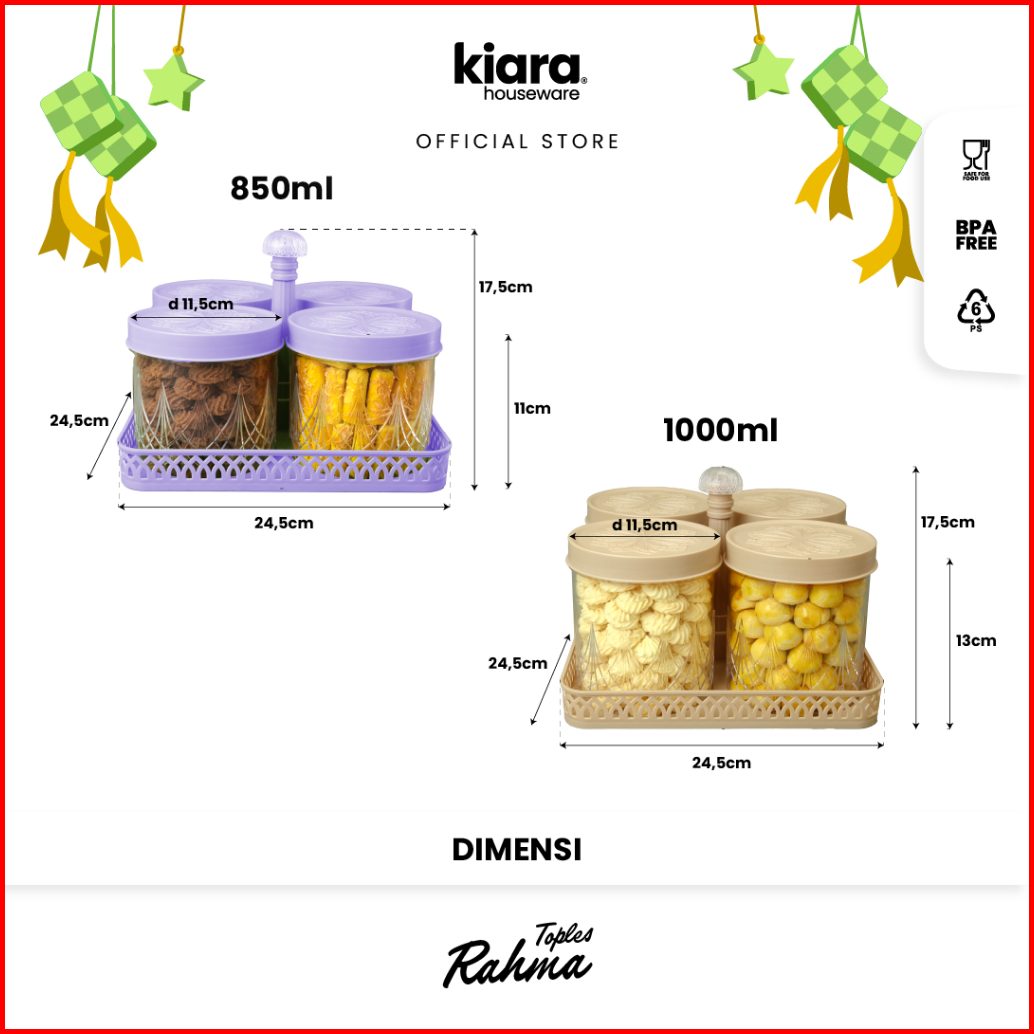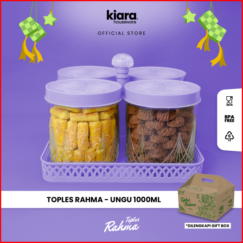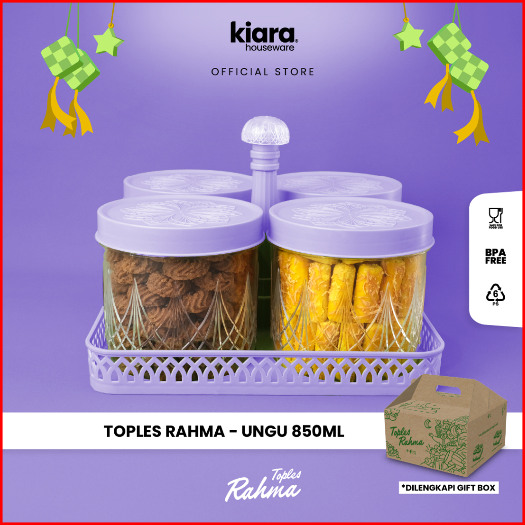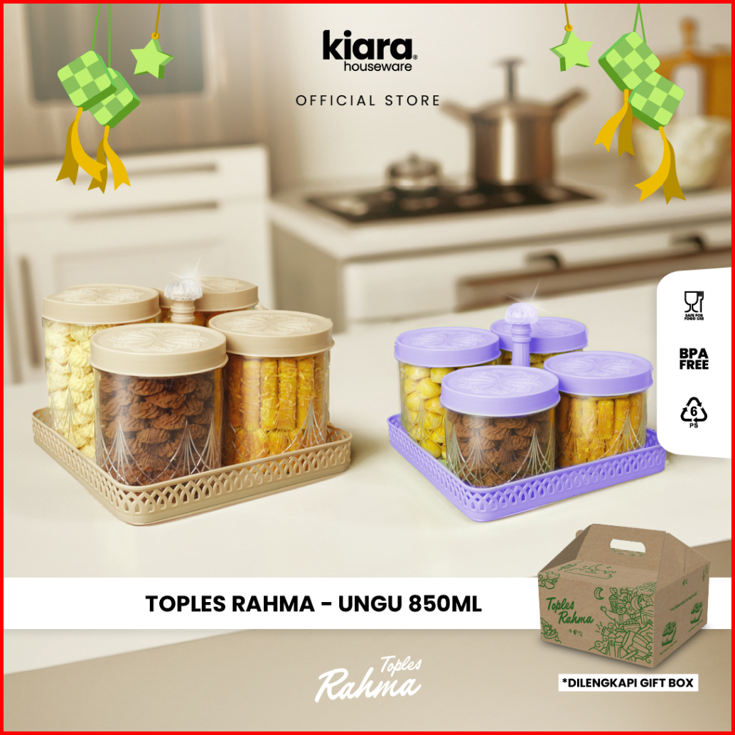 Kiara Houseware Toples Rahma Set Toples Mewah Lebaran Penyimpanan Kue Kering Lebaran Gratis Nampan Dan Gift Box