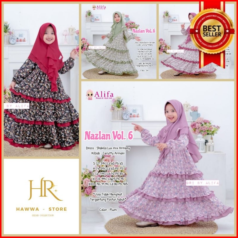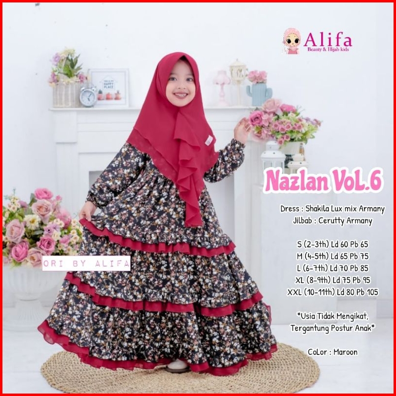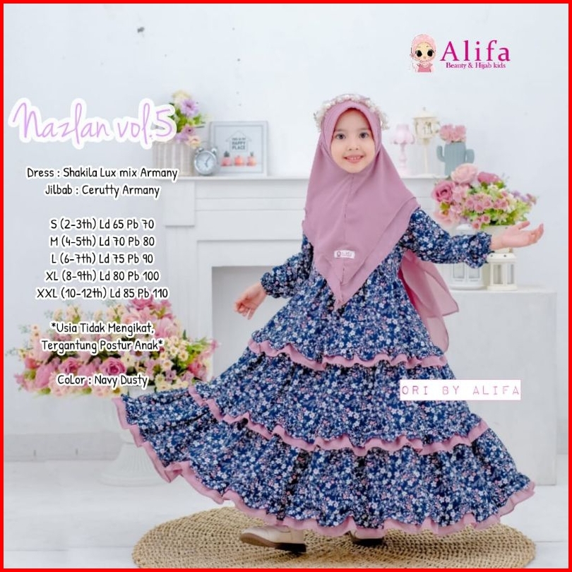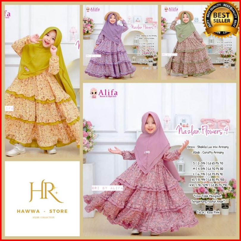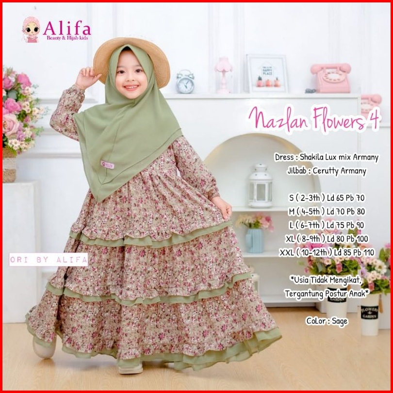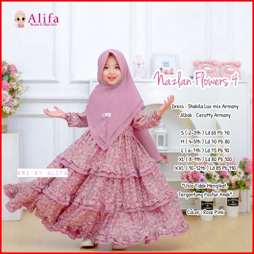 Ready Siyap Kirim Nazlan 4 5 6 Dress Anak Perempuan Sakila Motif Bunga 3-12 Tahun Nazlan Flower 4 Alifa 5 3