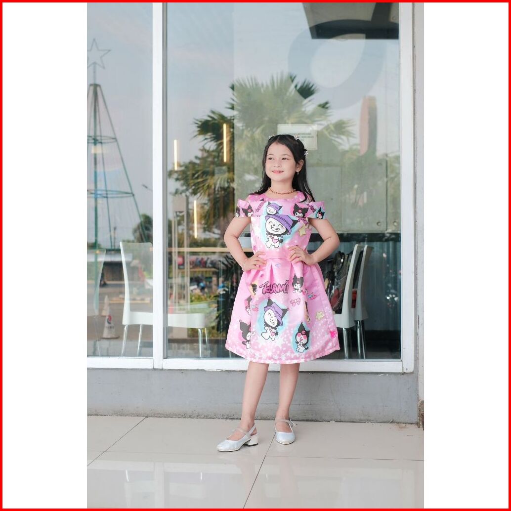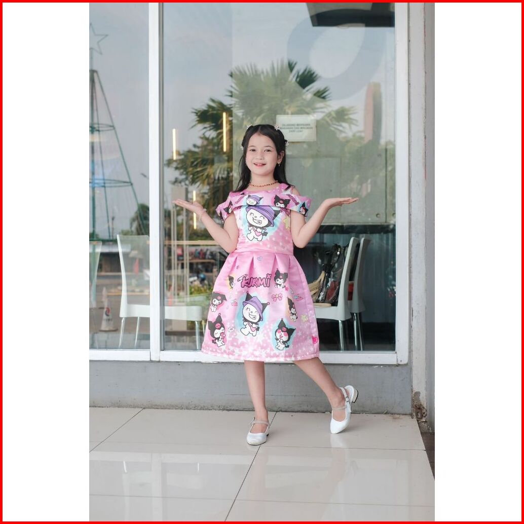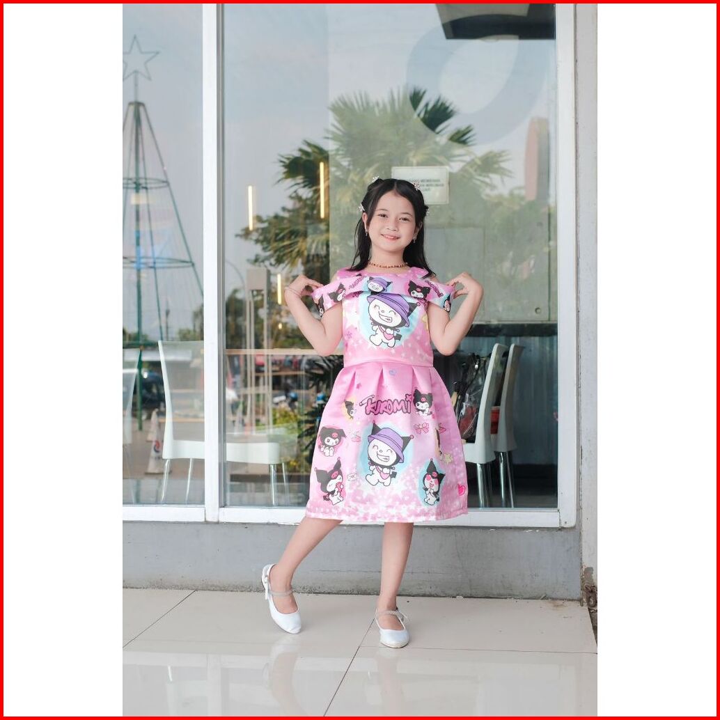 Dress Pesta Anak Perempuan Motif Kuromi Usia 2 - 9 Tahun Full Printing