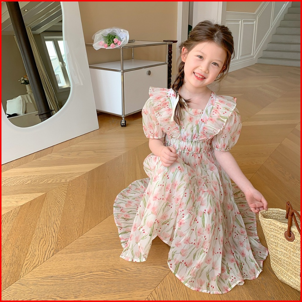 Meandboss Dr38-dress Gaun Anak Perempuan Momo Flower Dream Tulip Fashion Korea Princess