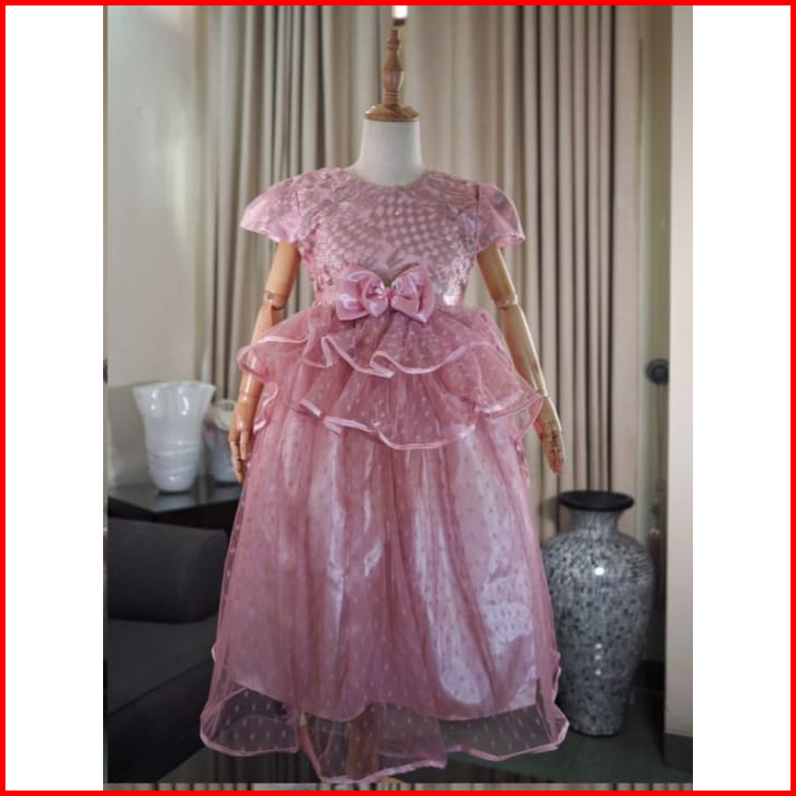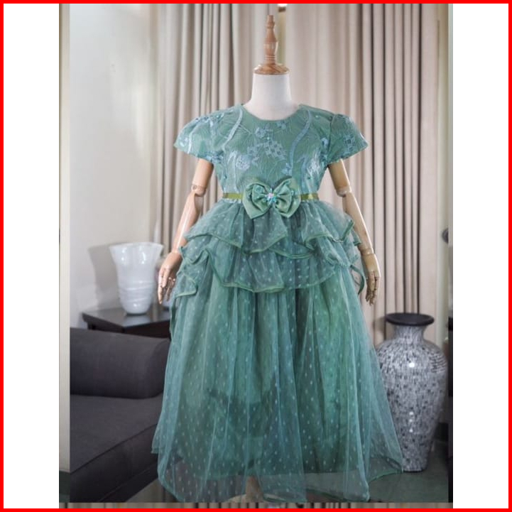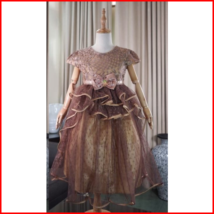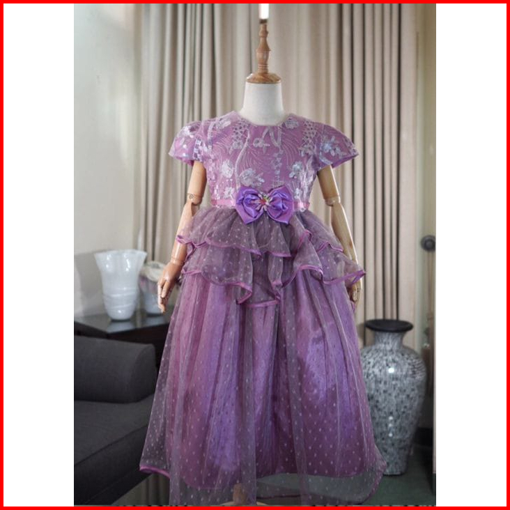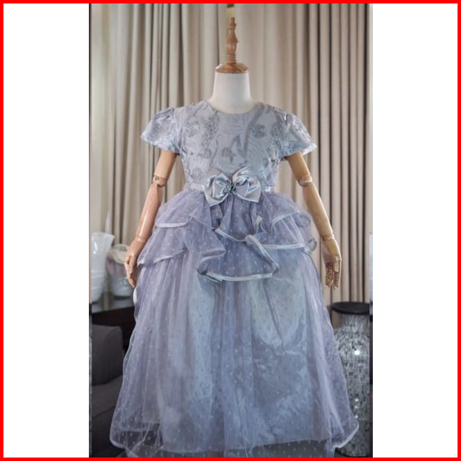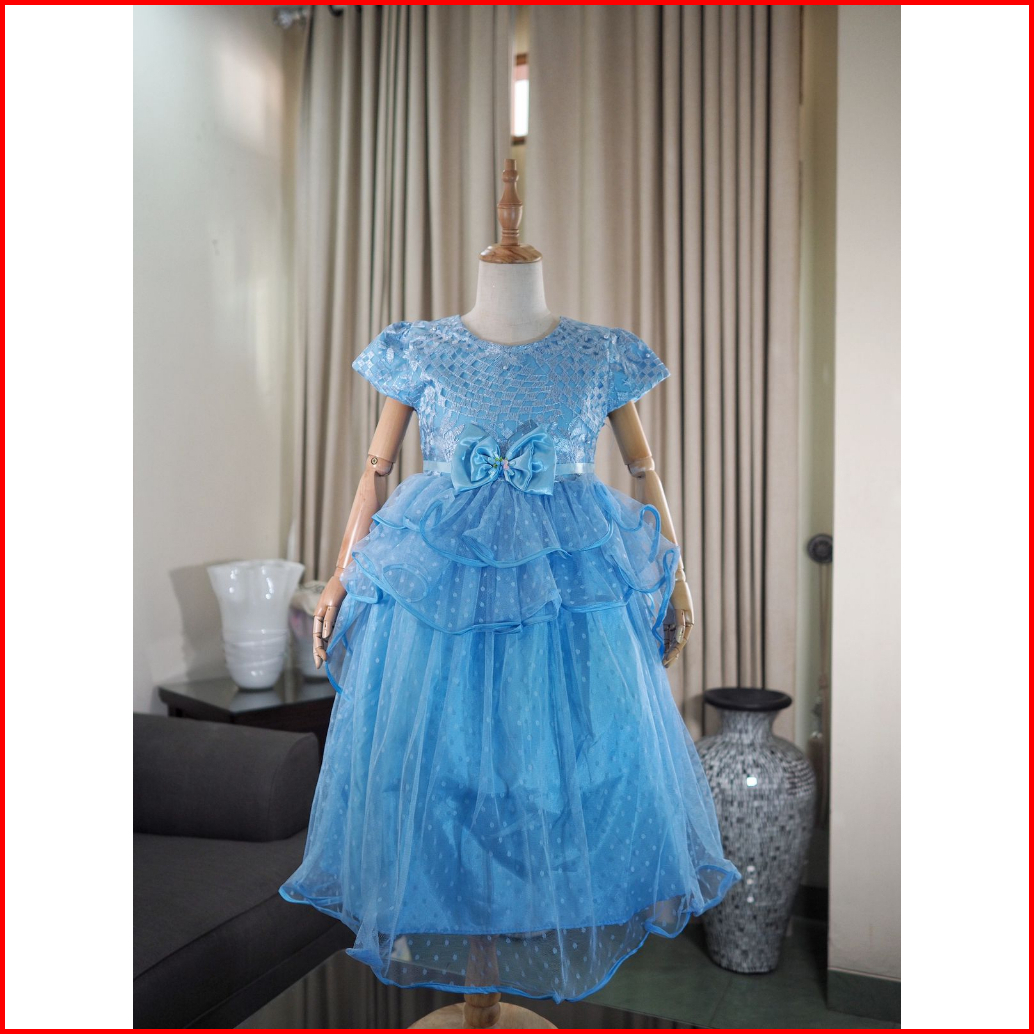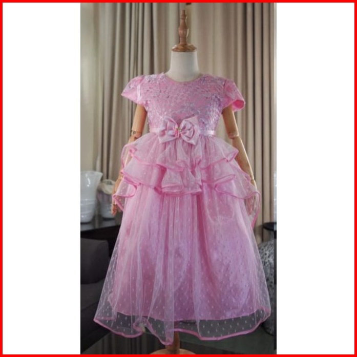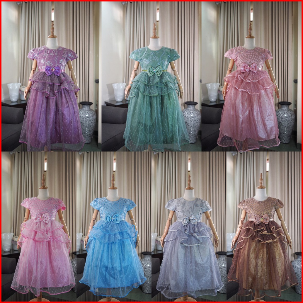 Gaun Pesta Mewah Anak Perempuan Dress Pita Polkadot Usia 3-10 Tahun