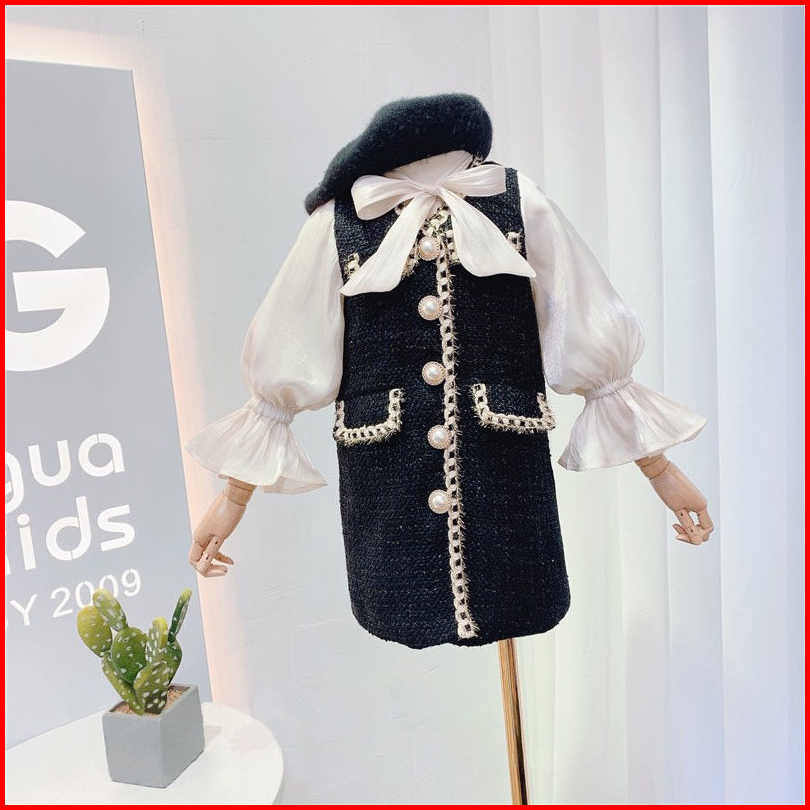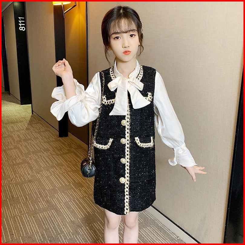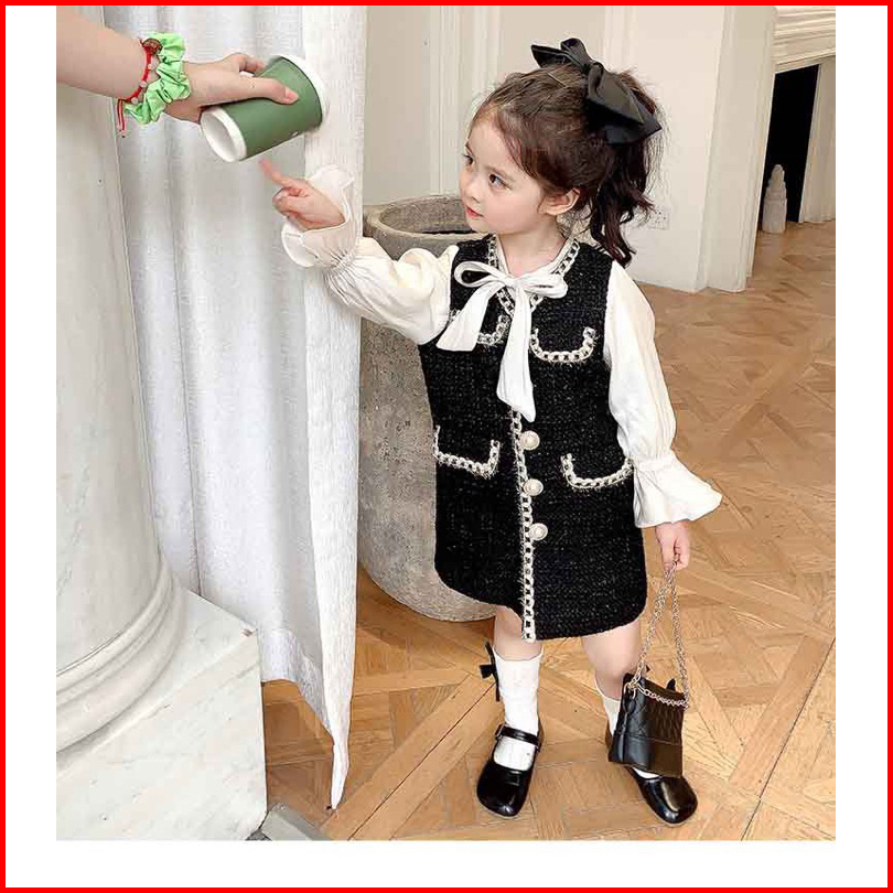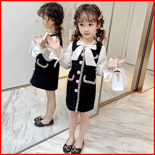 1-8tahun Dress Mini Mewah Korea Baju Pesta Hitam Putih Anak Perempuan Premium