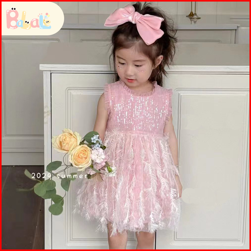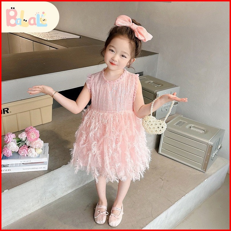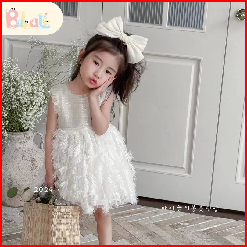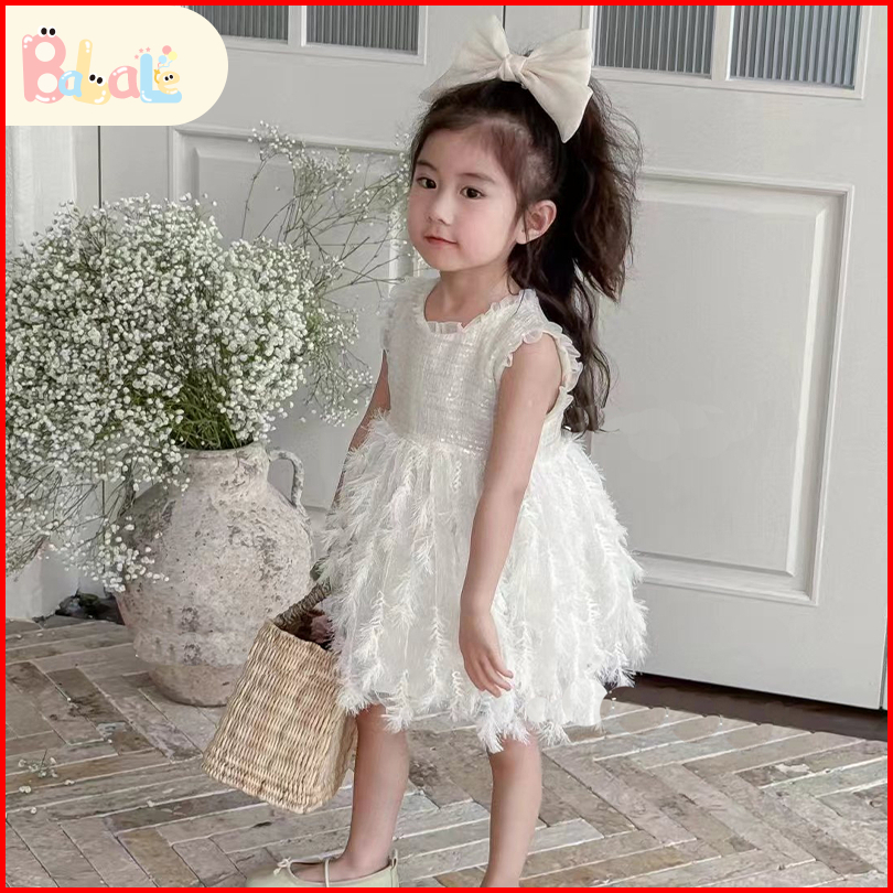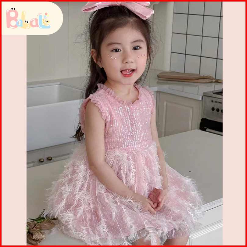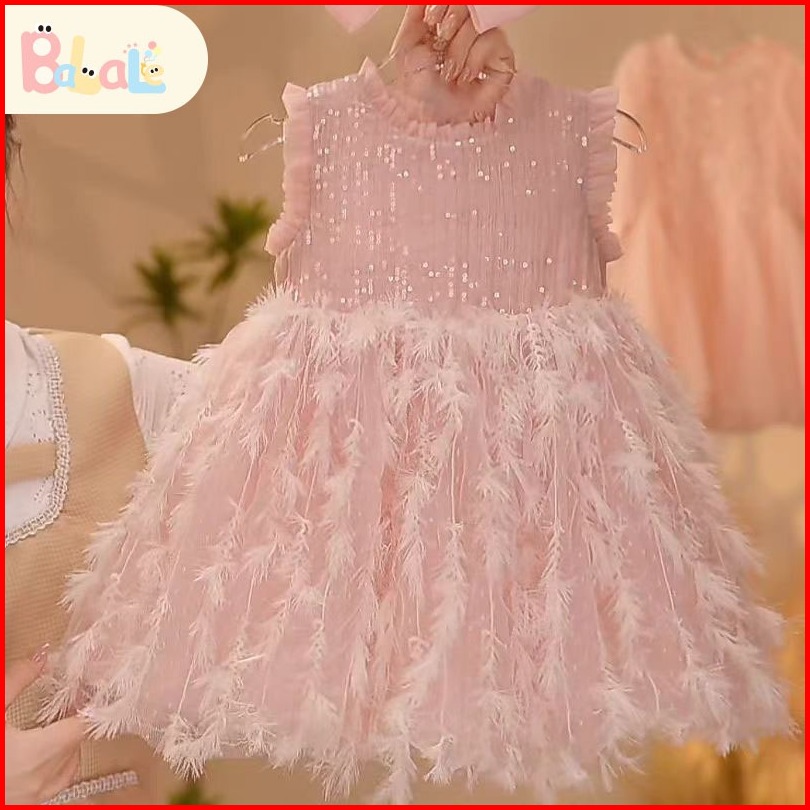 Dress Princess Anak Perempuan Feather Gaun Pesta Ulang Tahun Elegant Baju Pesta Anak Perempuan Baju Pengantin Kondangan