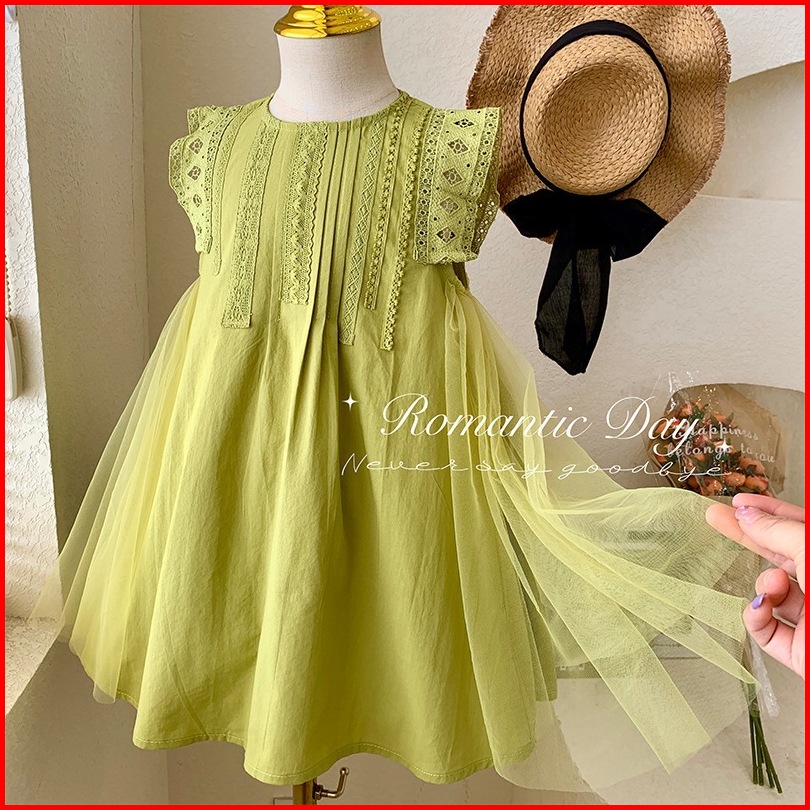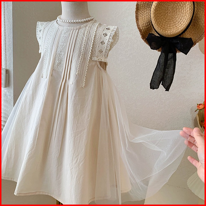 Cacoa 1-7 Tahun Dress Elegant Anak Perempuan Tanpa Lengan Gaun Polos