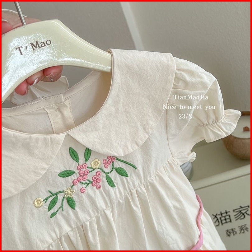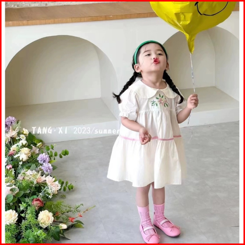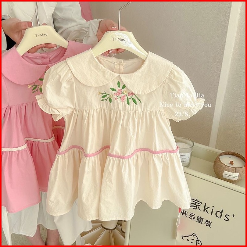Happy Baby0-3tahun Dress Anak Perempuan Dress Bayi Perempuan Gaun Anak Lucu Dengan Kerah Bordir Bunga Qz-149
