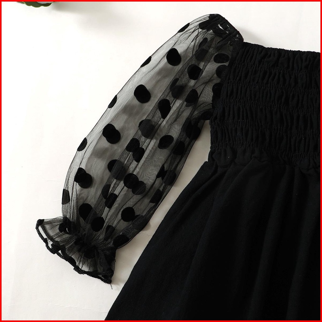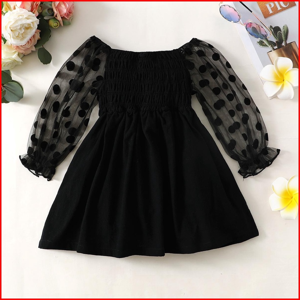 Haasya Kids 1-6 Tahun Anak-anak Berusia Gaun Bayi Perempuan Dihiasi Tulle Lengan Panjang A-line Gaun Pesta Sehari-hari Y