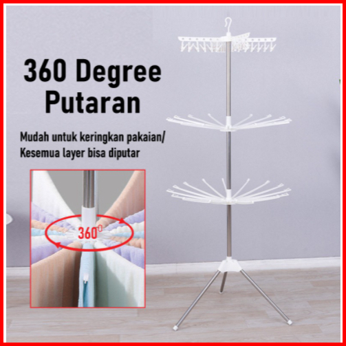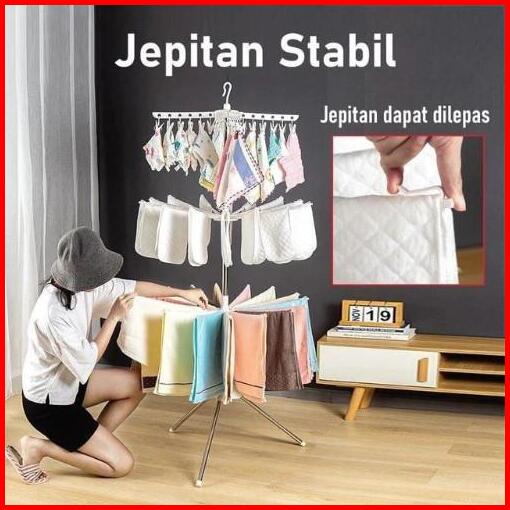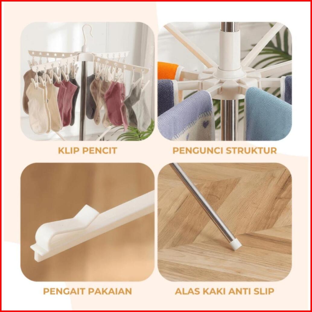 Jemuran Menara Rak Jemuran Baju Bayi Lipat Rak Susun Handuk Foldable Hanger 10 Jari-jari