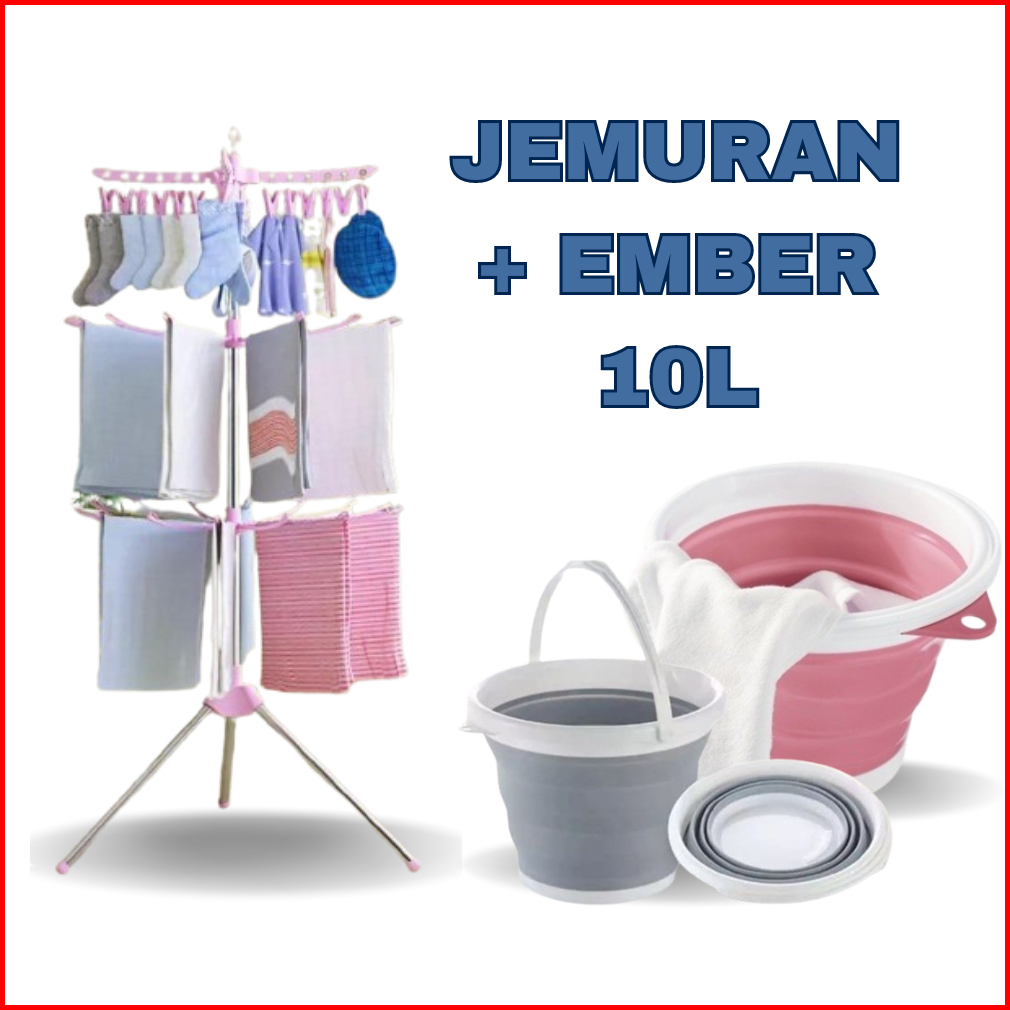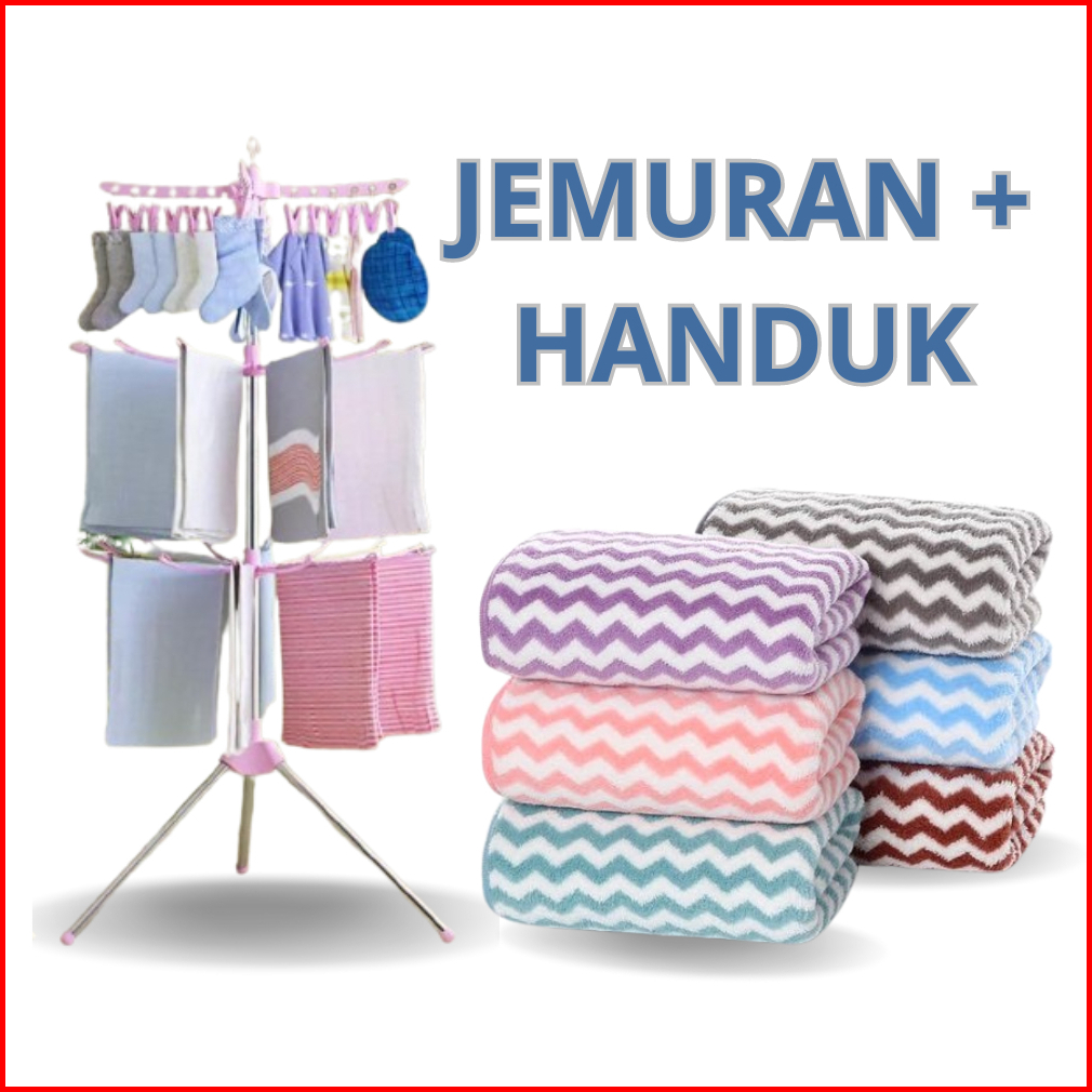 Dtg Grup Paket Hemat Spesial Jemuran Menara 3 Susun Dengan Handuk Lucu Gantungan Baju 16 Jari-jari