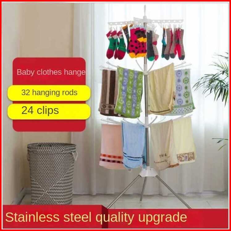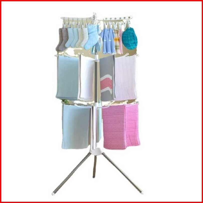 Jemuran Baju Menara 10 Jari 3 Tingkat Gantungan Baju Bayi Hanger Foldable Clothes Drying Airer Rak