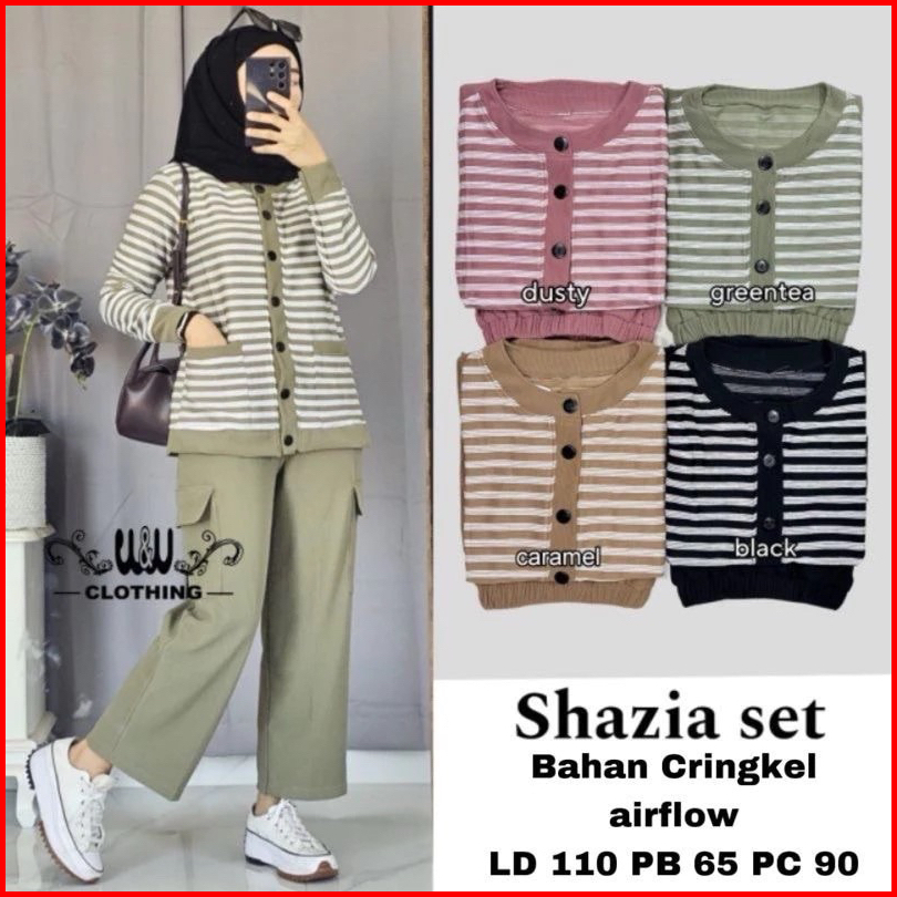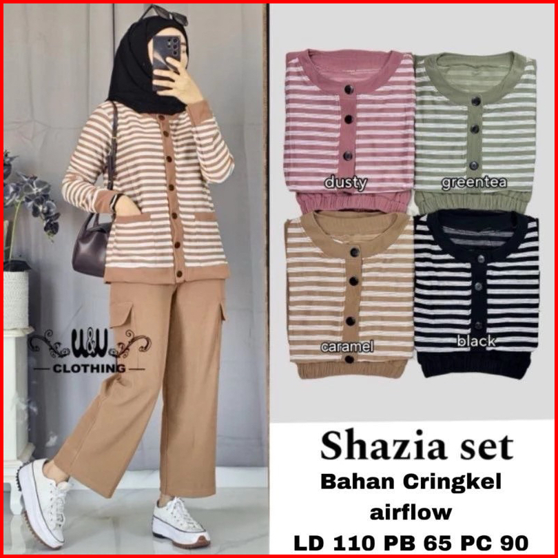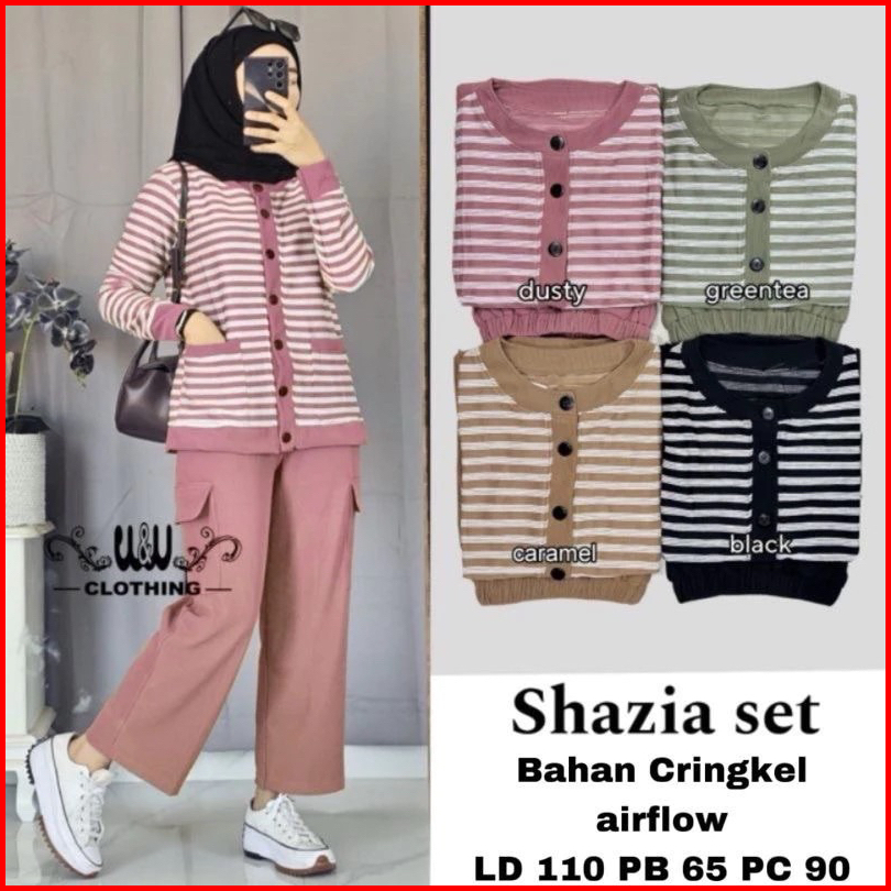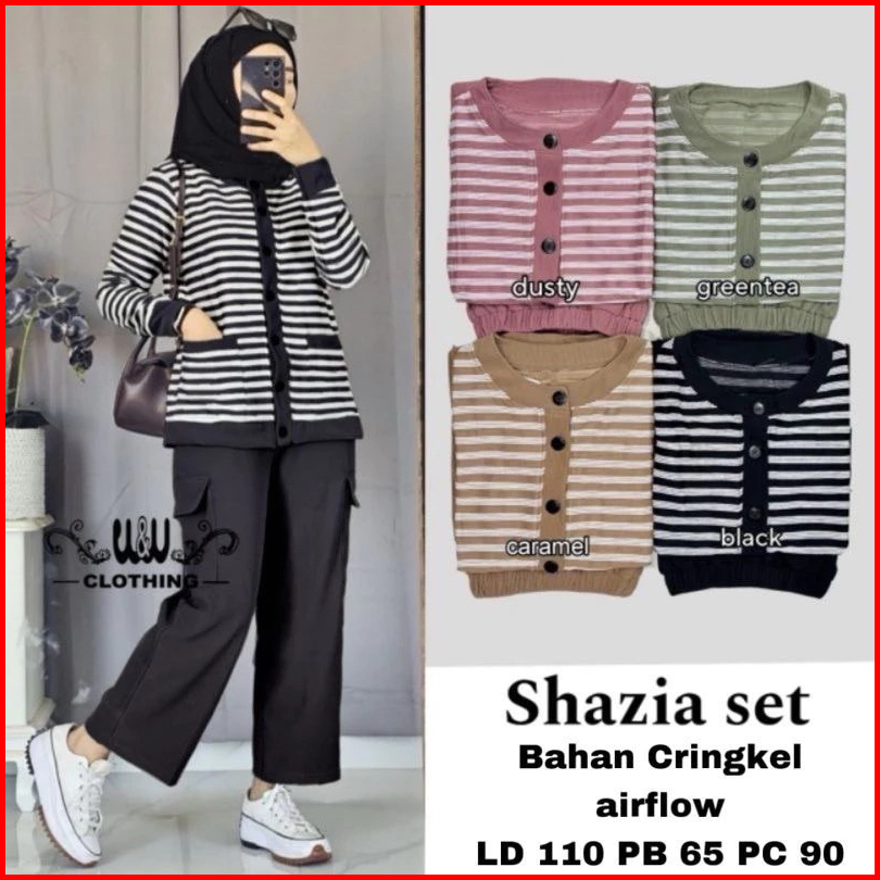 Setelan Salur Shazia 422 Baju Muslim Pakaian Wanita Kekinian One Set Kekinian Baju Muslim