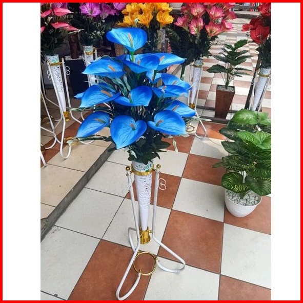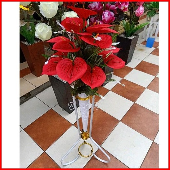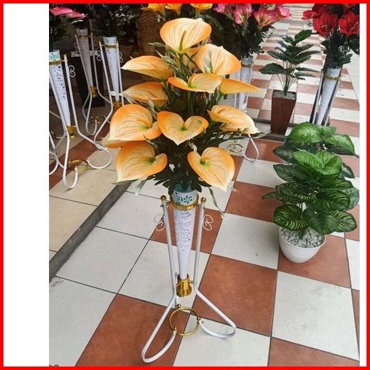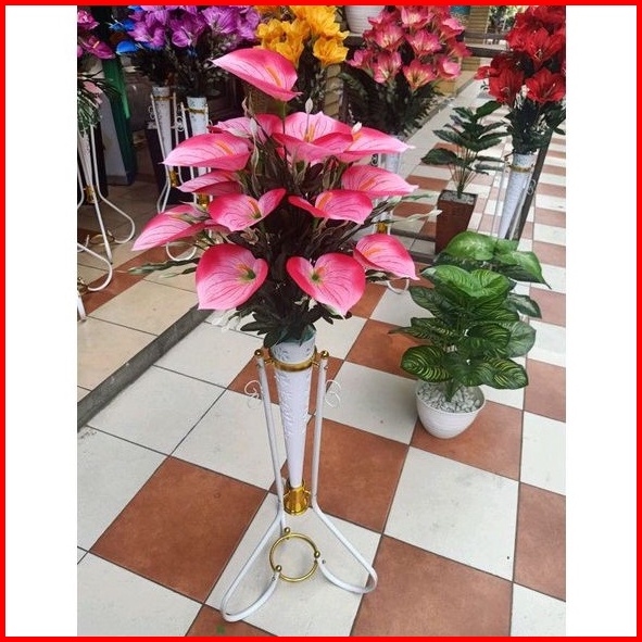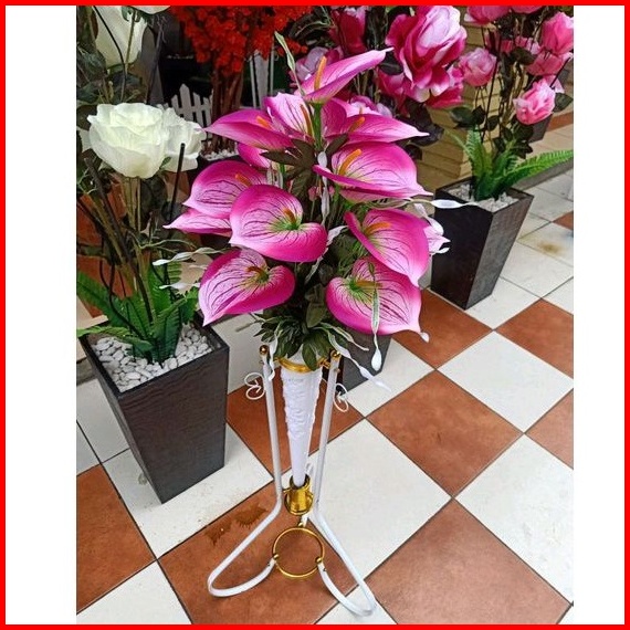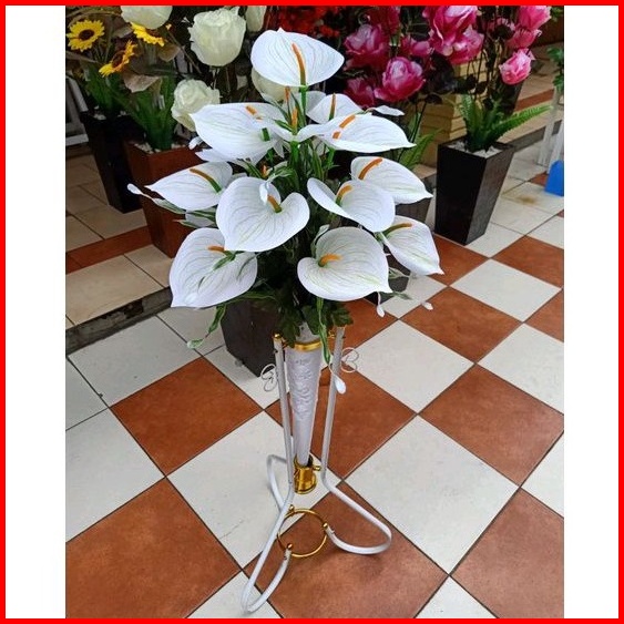 Bunga Anthurium Lilly Calla Lilly Aron Panda Artificial 18 Kuntum Dengan Pot Standing Besi
