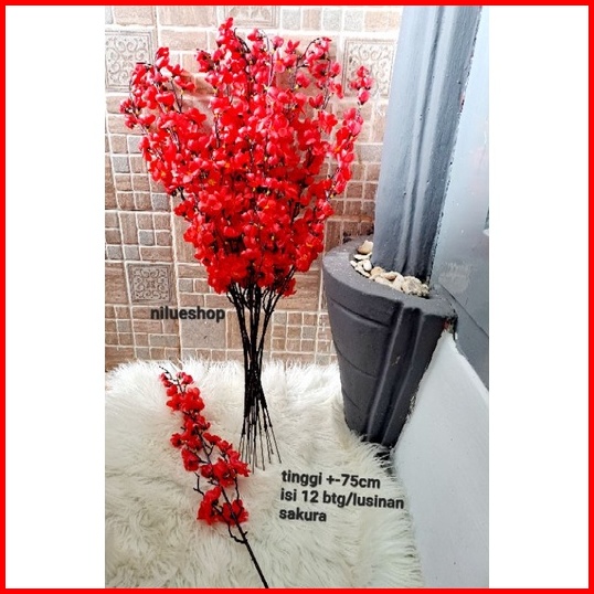 Bunga Sakura Artificial 1lusin 12btg Bunga Plastik Bunga Sakura Bunga Dekorasi Bunga Dekorasi Pelaminan