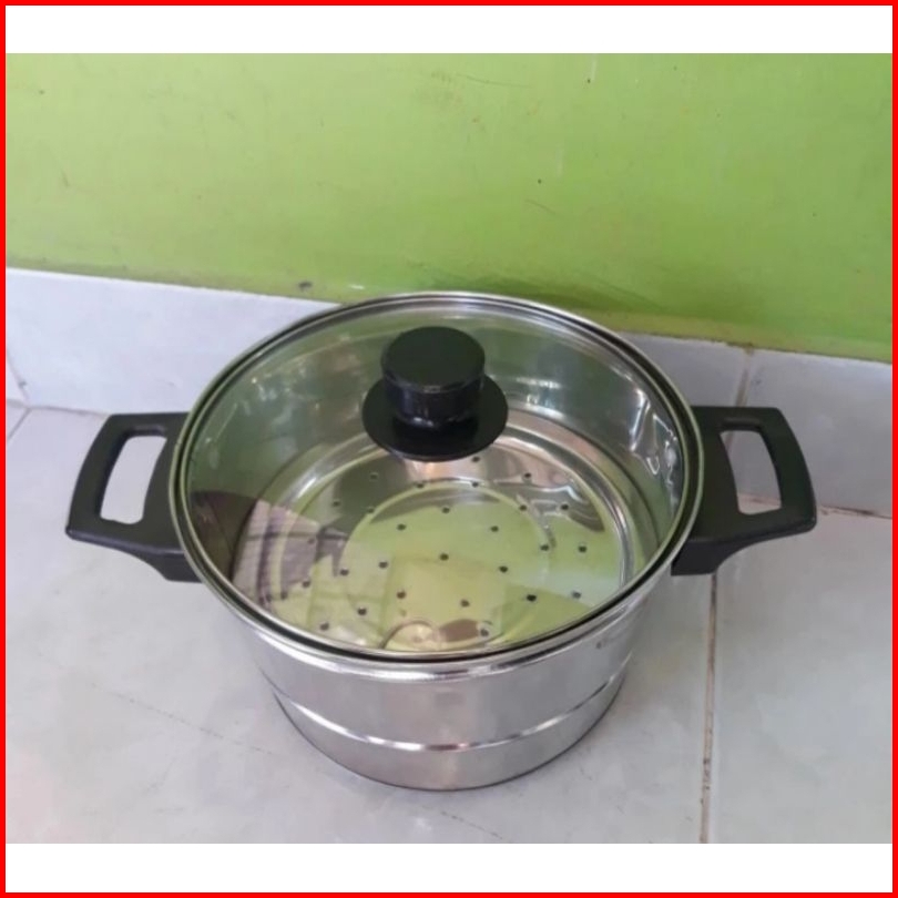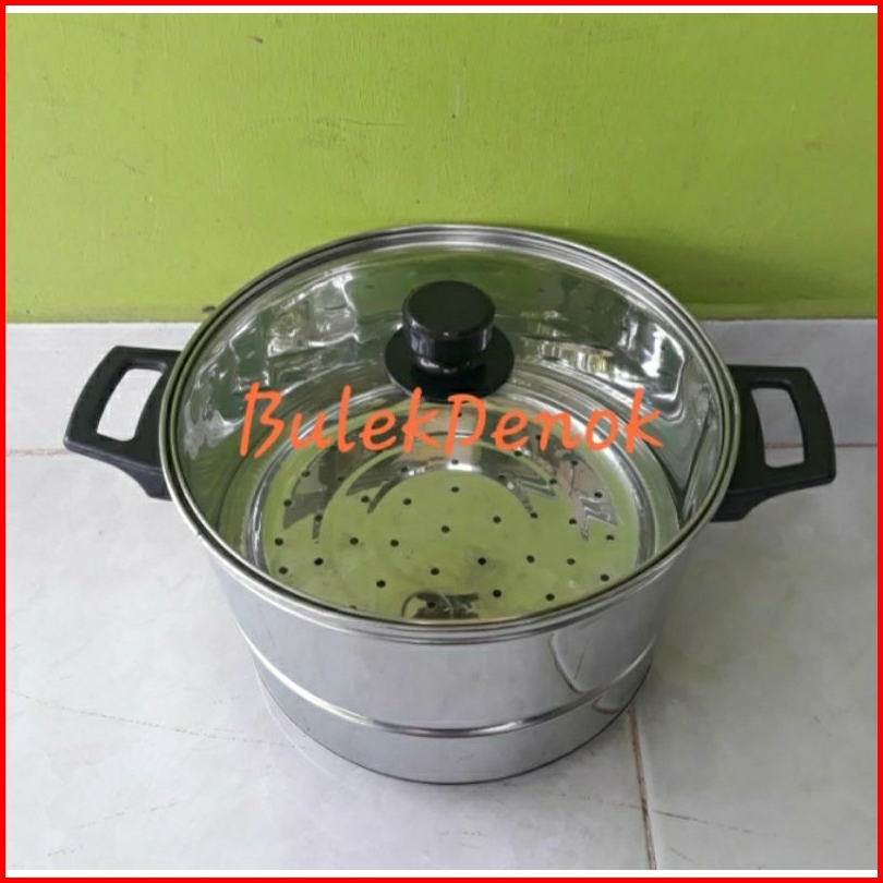Panci Dandang Kukus Steamer Tutup Kaca 24cm