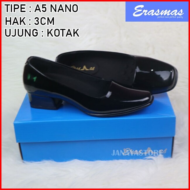 Sepatu Pdh Polwan Kowad A5 Erasmas Pns Hak Kotak 3cm Sepatu Formal Wanita Sepatu Pantofel Wanita