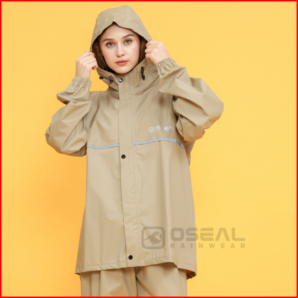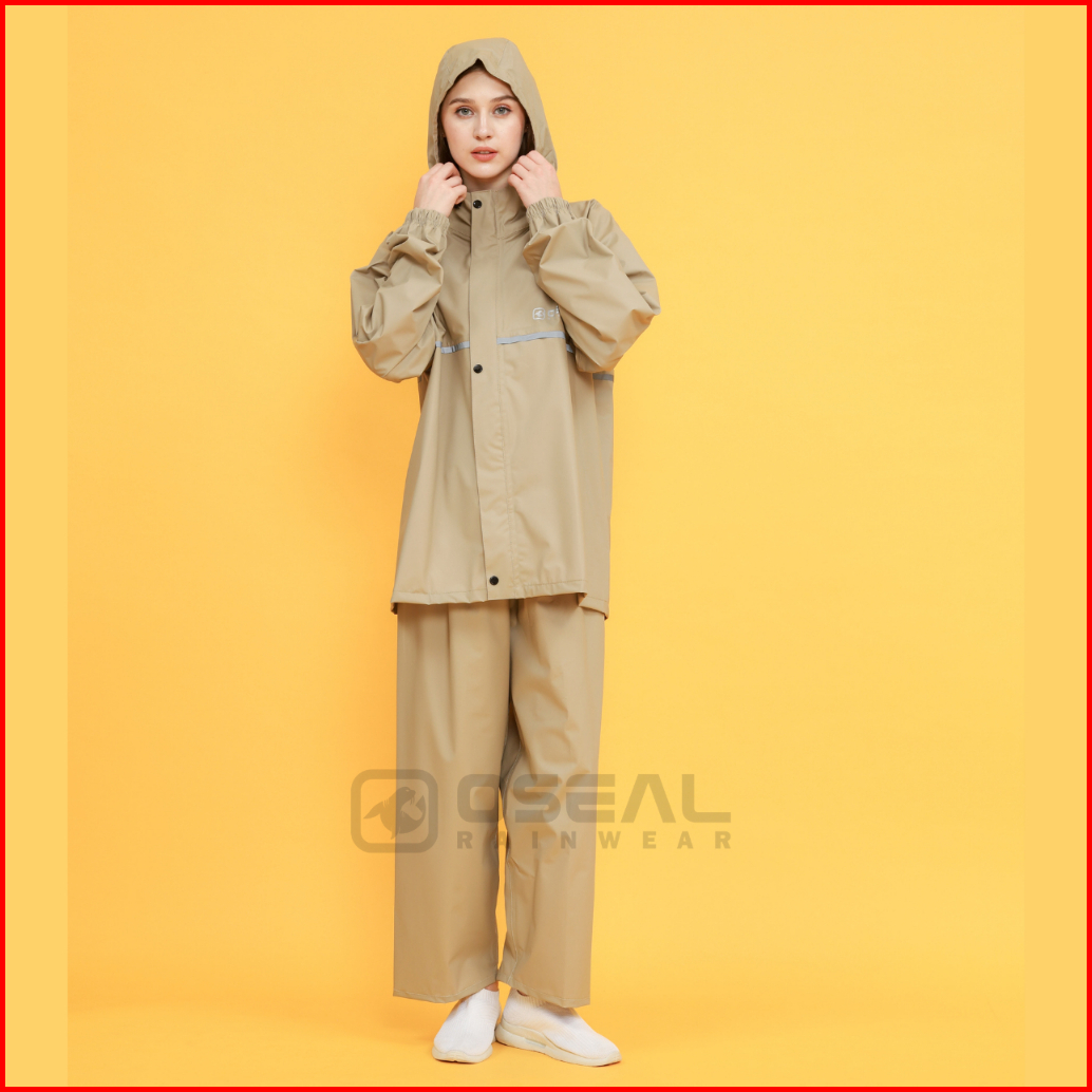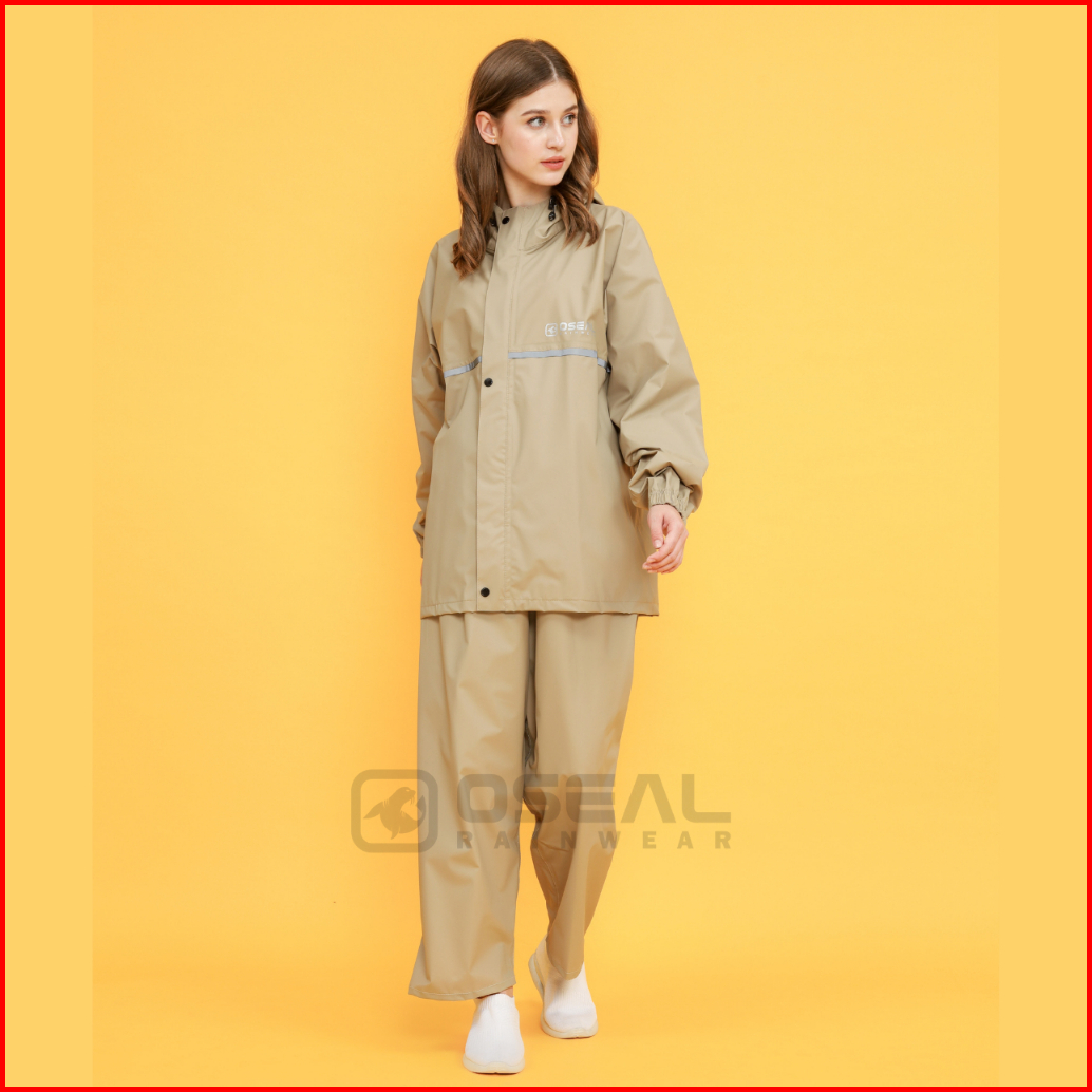 Oseal Jas Hujan Raincoat Mantel Pria Wanita Dewasa Full Seal Reflective Mocca