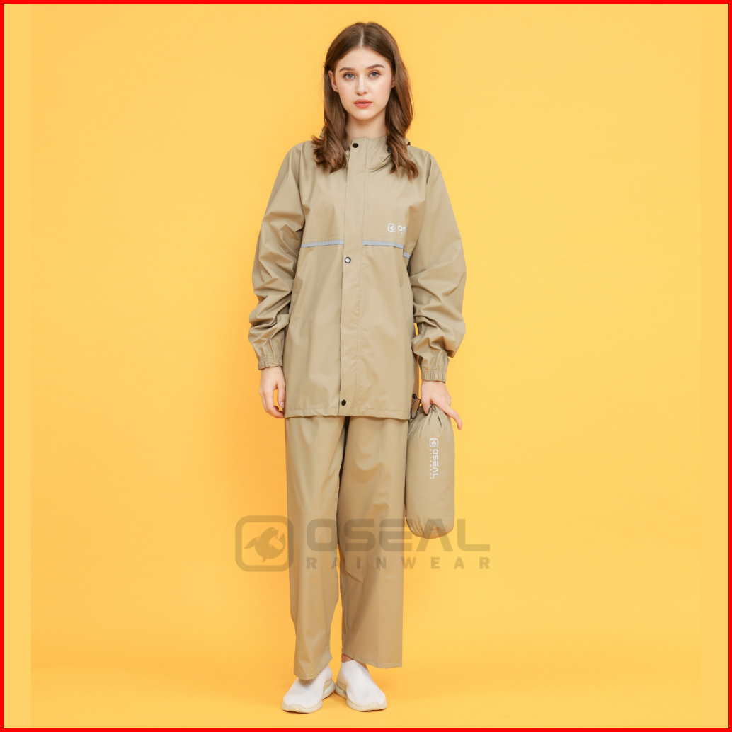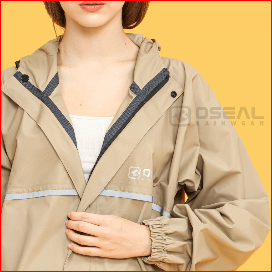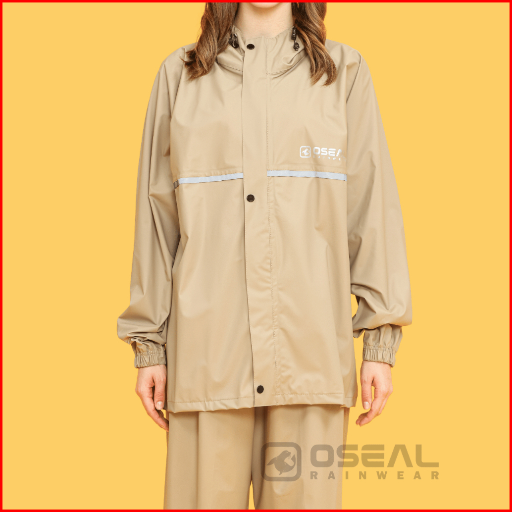 Oseal Jas Hujan Raincoat Mantel Pria Wanita Dewasa Full Seal Reflective Mocca