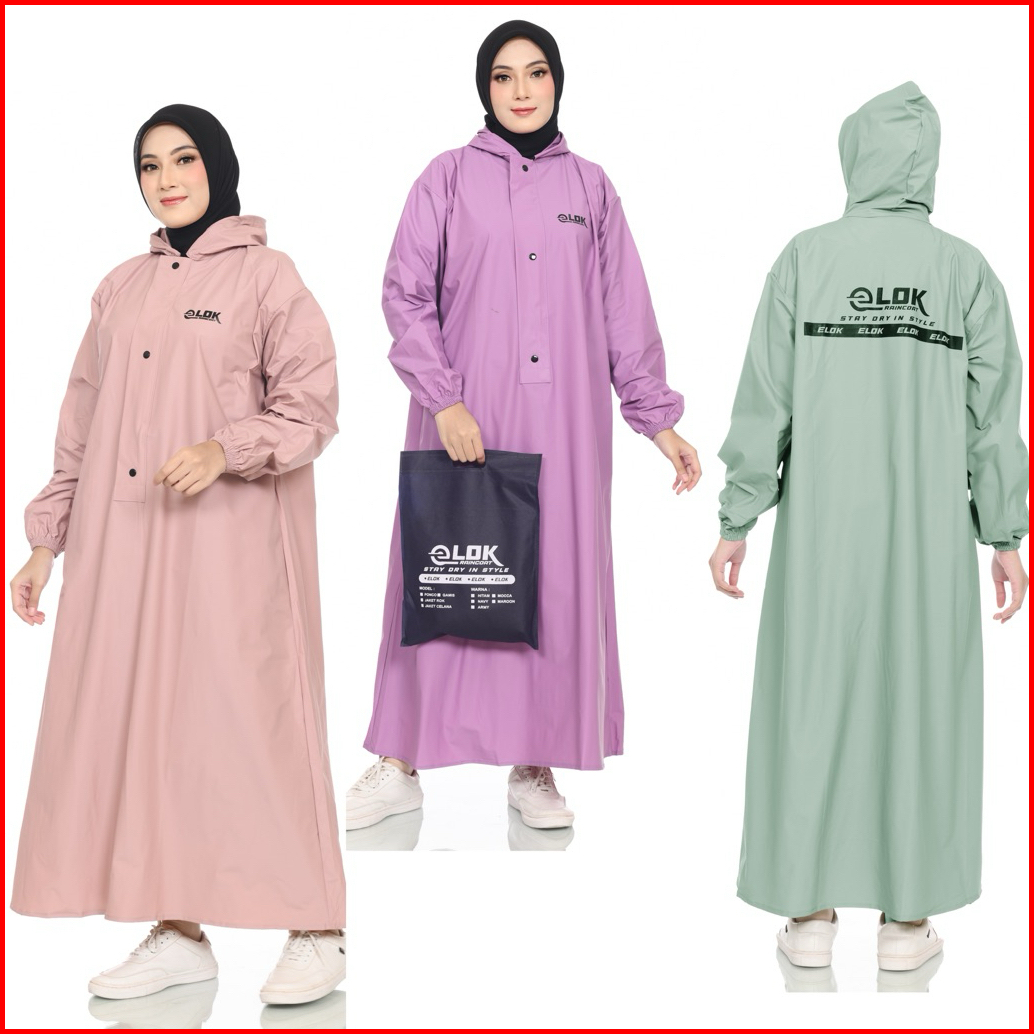 Jas Hujan Model Gamis Wanita Dewasa Anti Rembes Bahan Tebal