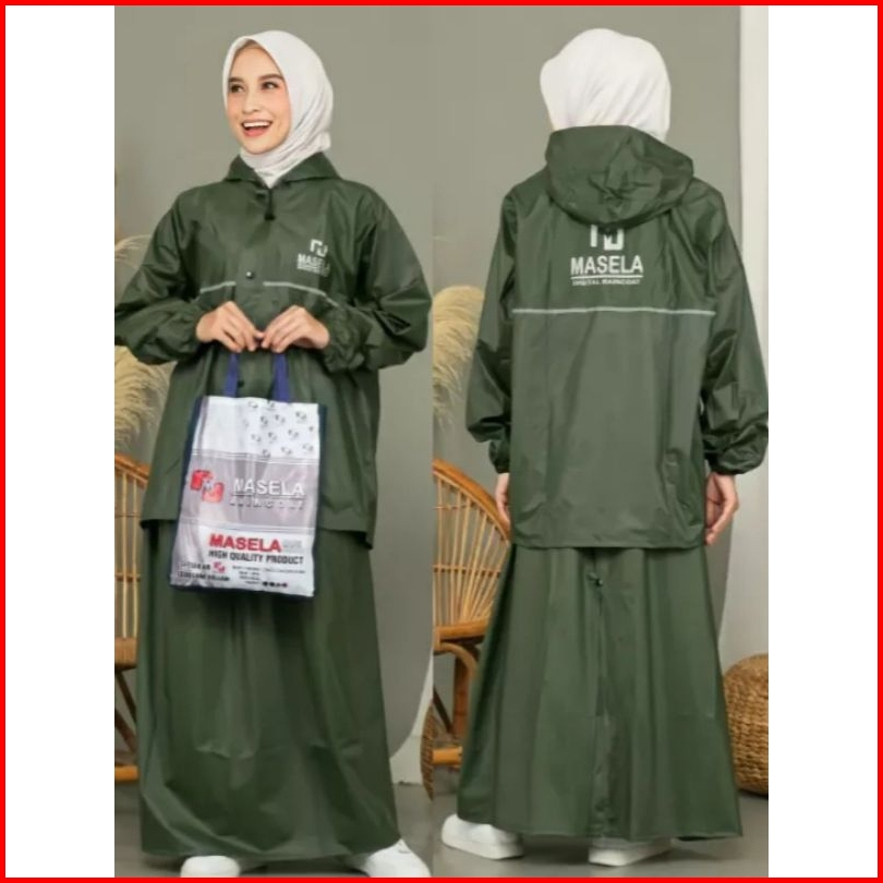 Masela Jas Hujan Wanita Mantel Fullpress Anti Rembes Setelan Baju Dan Rok