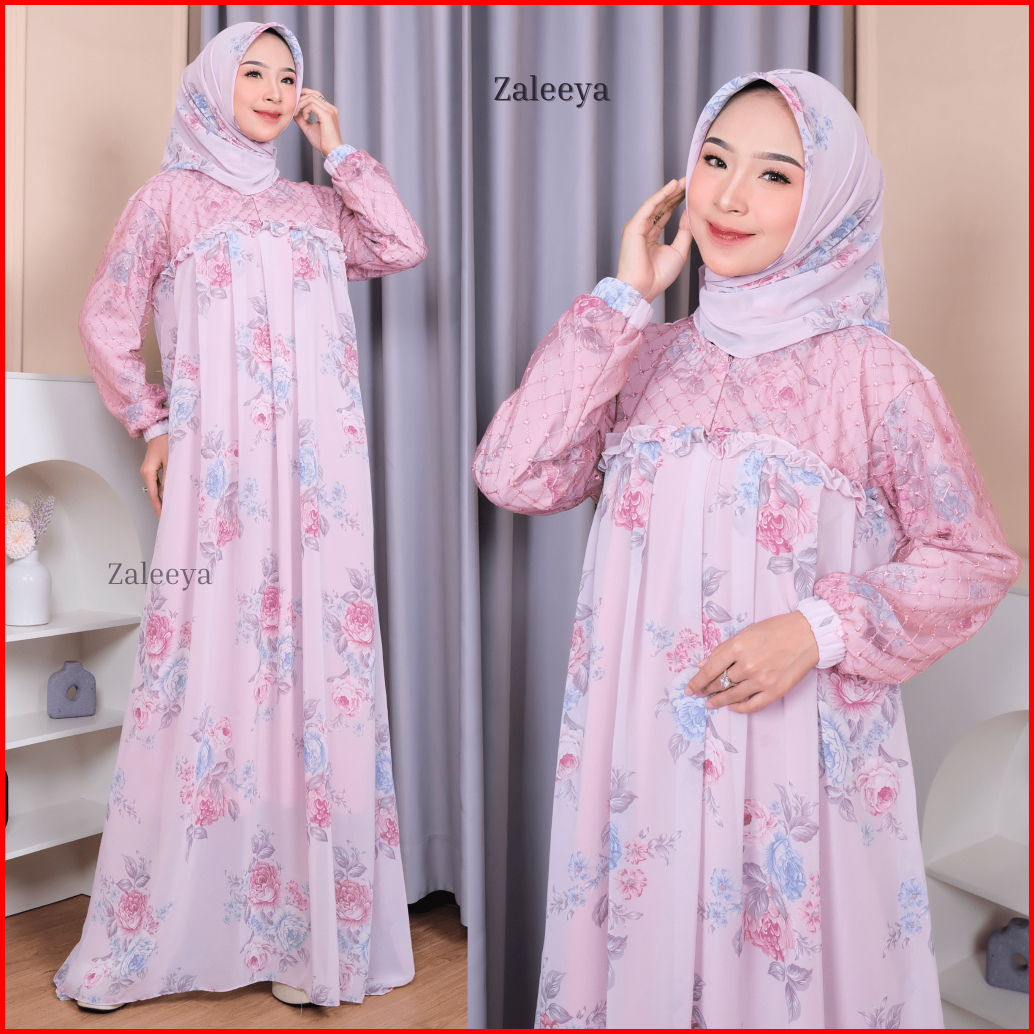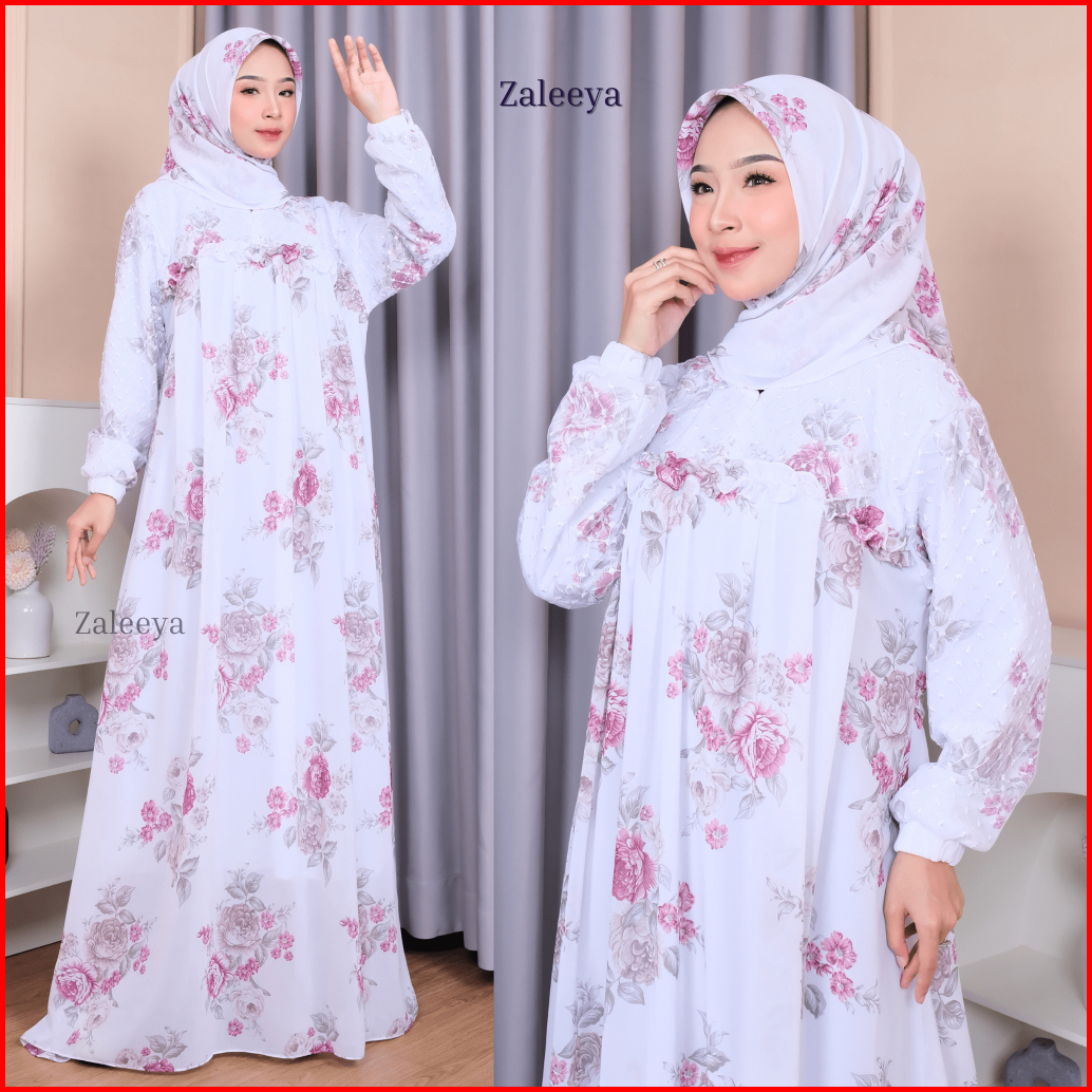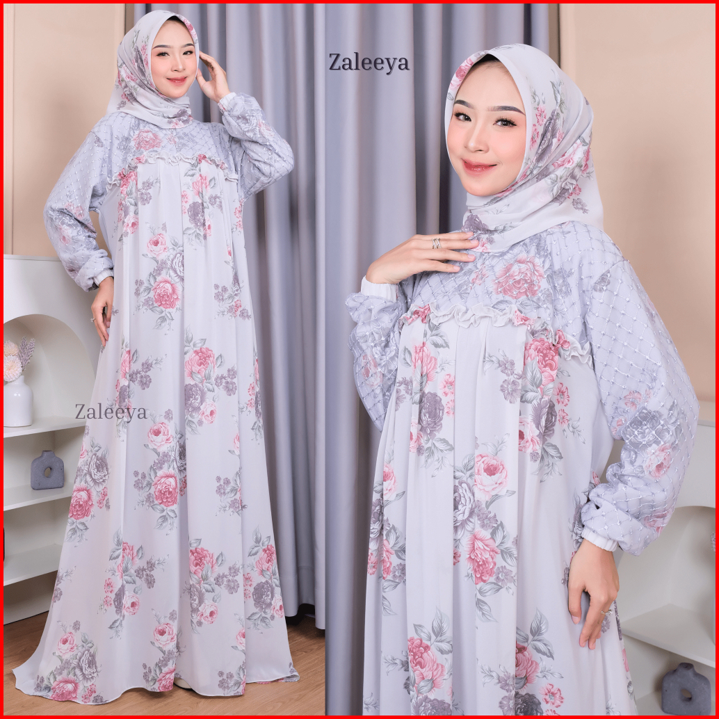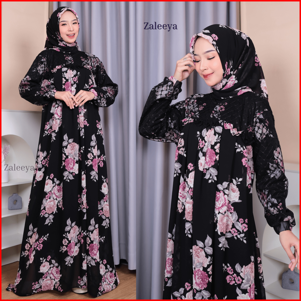 Andini Dress Gamis Ceruty Printing Full Furing Free Kerudung Segiempat Busui Dan Wudhu Friendly