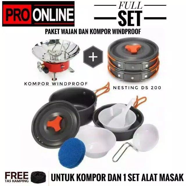 Paket Alat Dapur Set Piknik BBQ Kompor Portable Windproof Alat Masak Camping Mendaki Gunung 2 Susun Mudah Digunakan