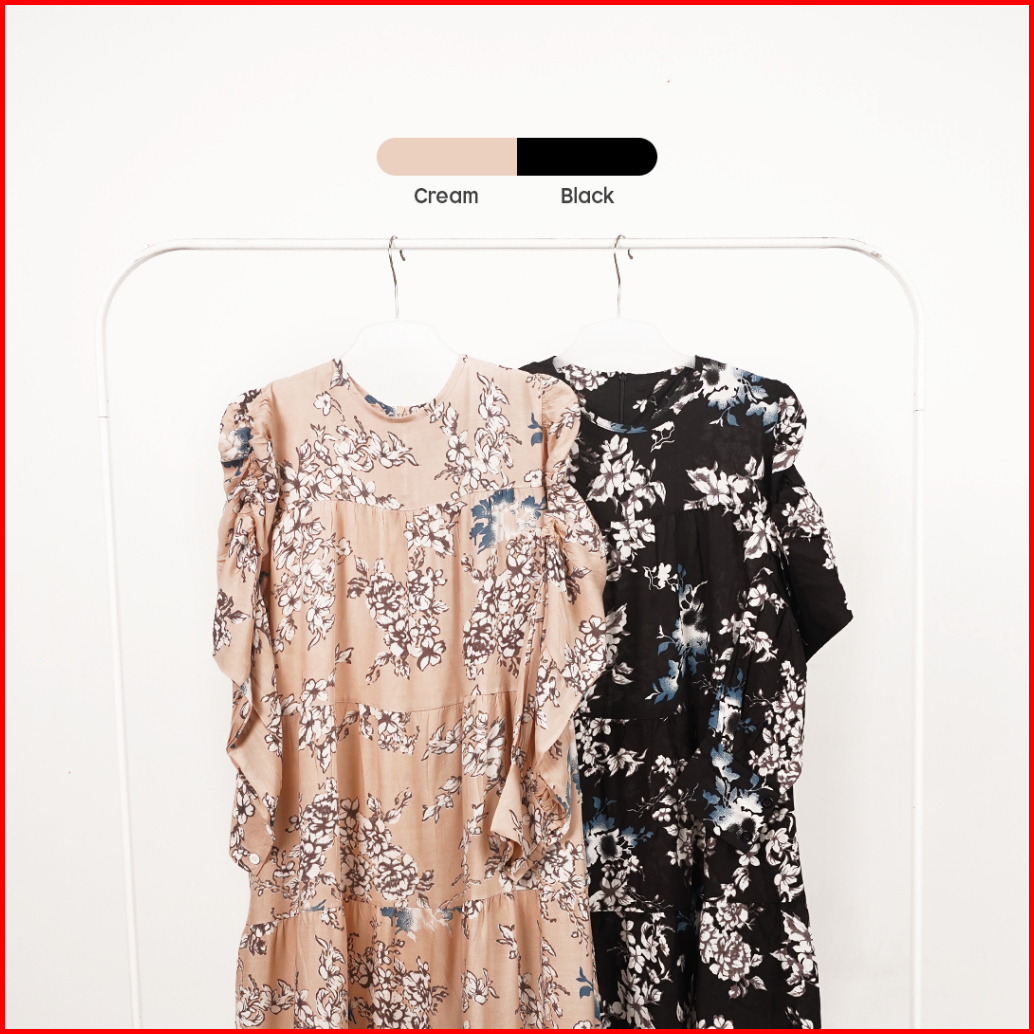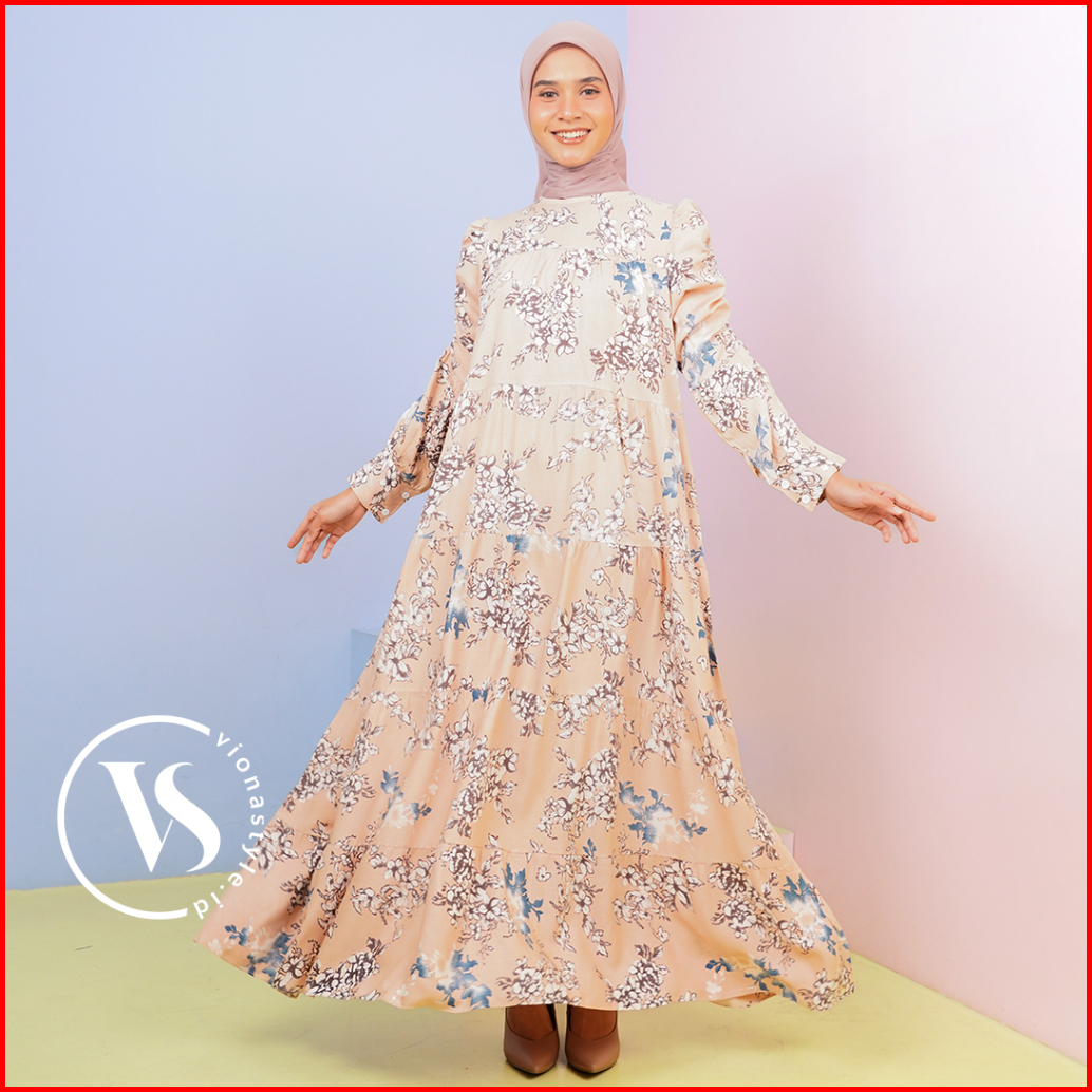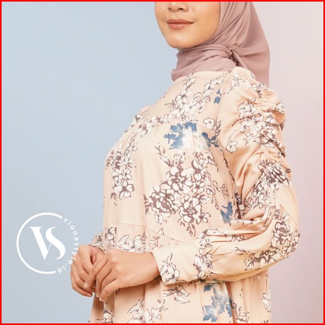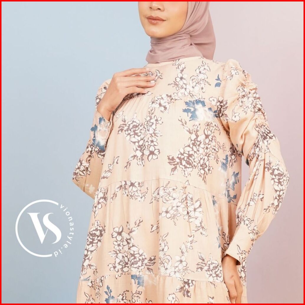 Gamis Midi Dress Wanita Motip Bunga Cotton Rayon Premium Tangan Panjang Terbaru Dan Terlaris 2024