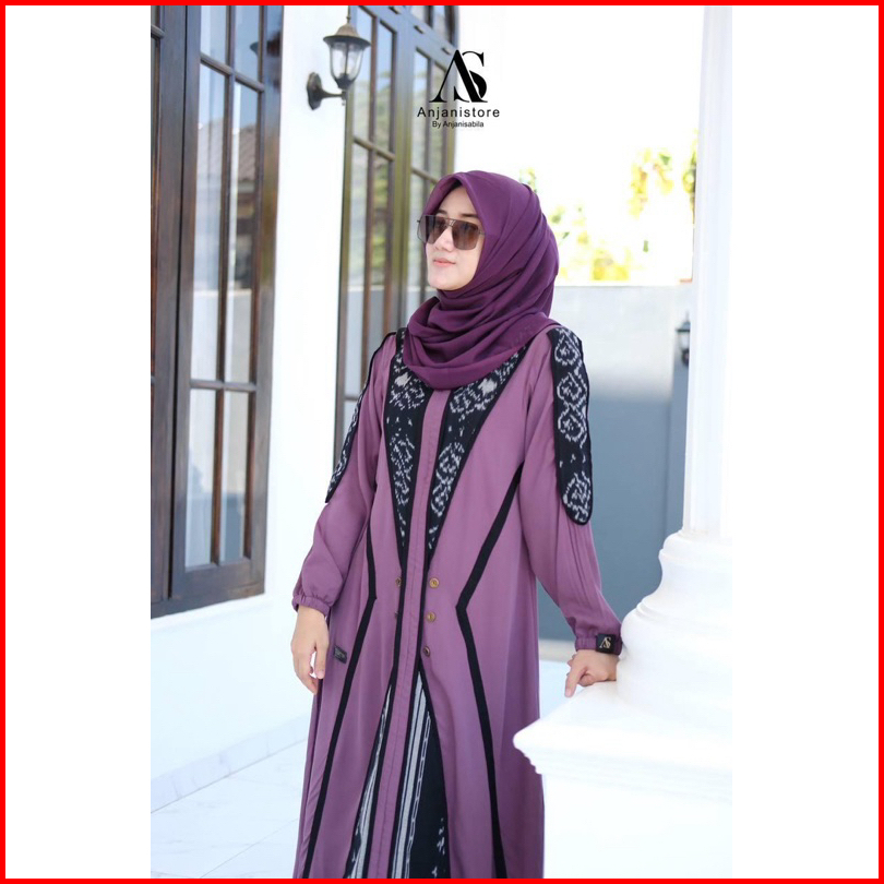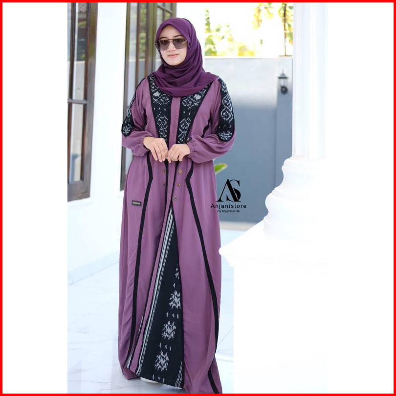 Dress Busana Muslimah Terusan Gamis Anjani Etnik Warna Ungu Purple By Anjanistore