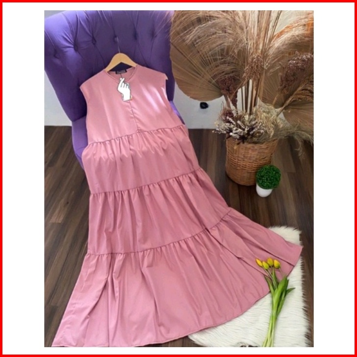 Iner Dress Susun Fashion Muslim Dalaman Gamis Tanpa Lengan Bahan Crinkle S M L Xl