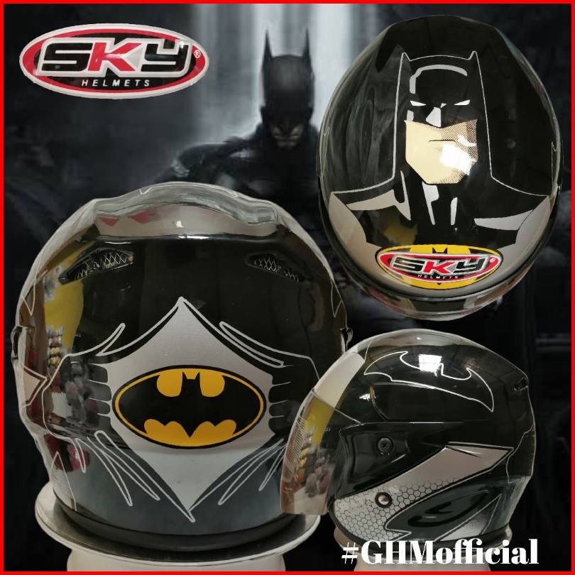 Helm Anak Murah Cowo Usia 3 Sampai 7 Tahun Sky Motif Karakter Batman Sni