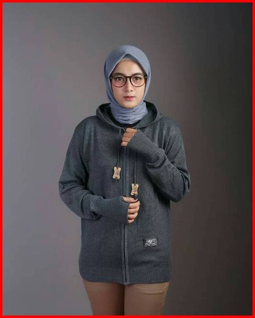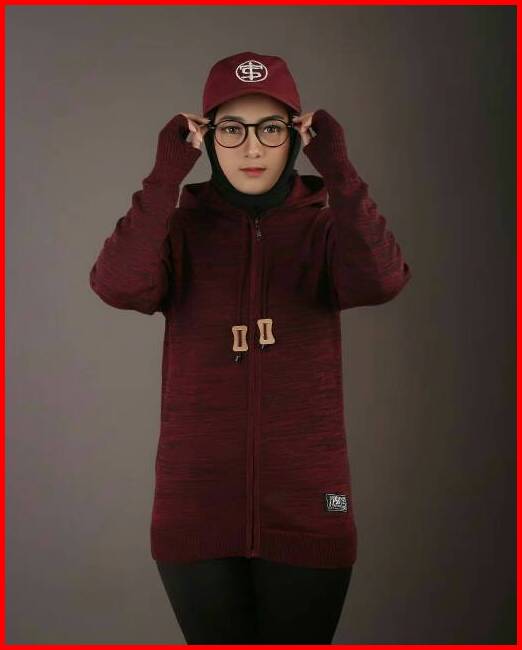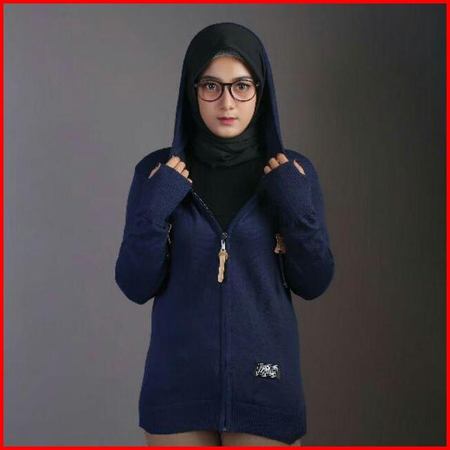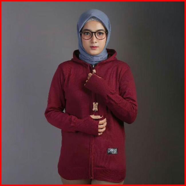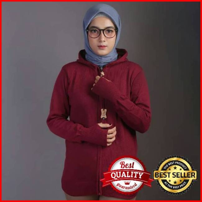 Jaket Sweater Rajut Hoodie Wanita Aril Roundhand Simple