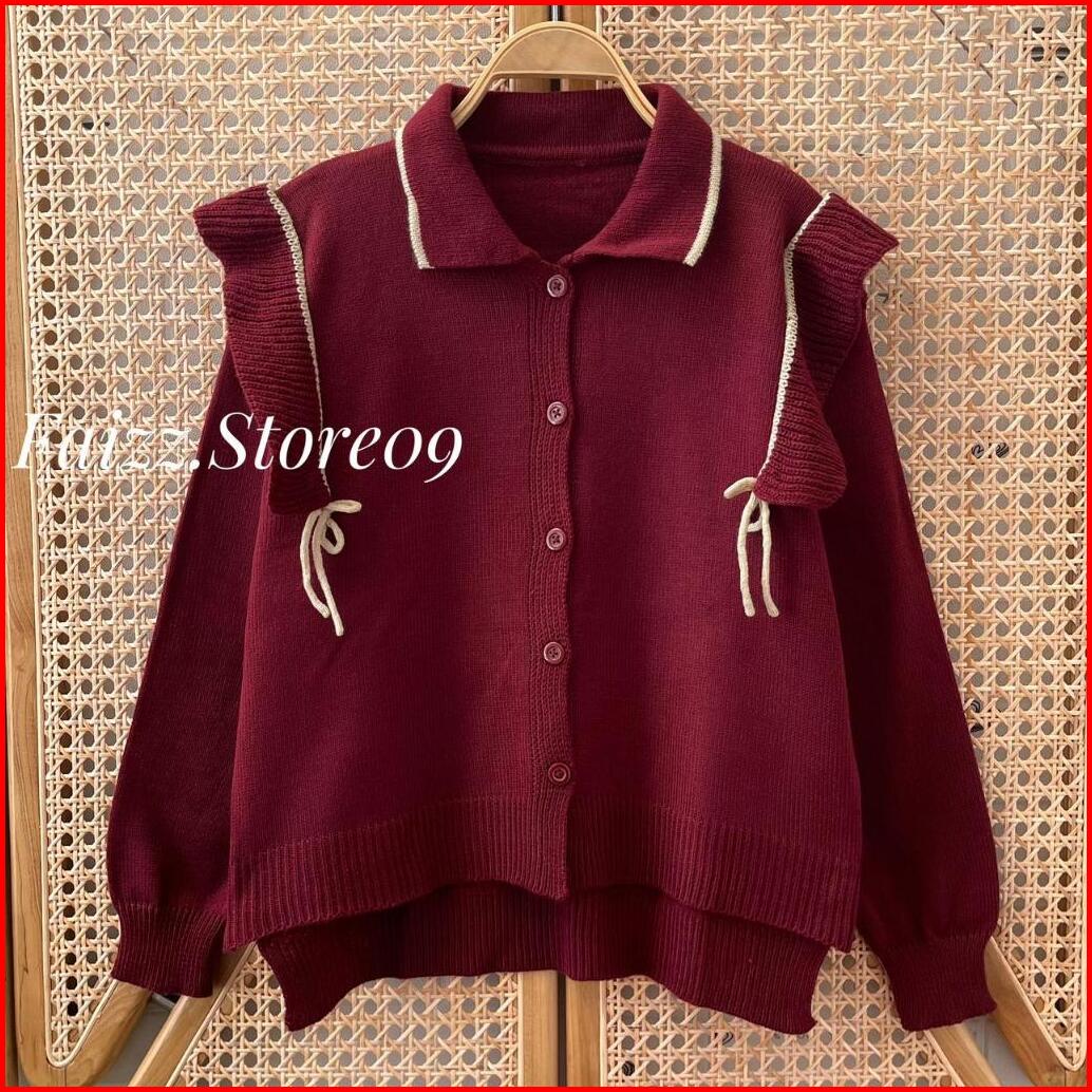 Alidah Cardigan Rajut Kancing Motif Tali Wanita Lengan Panjang Kekinian
