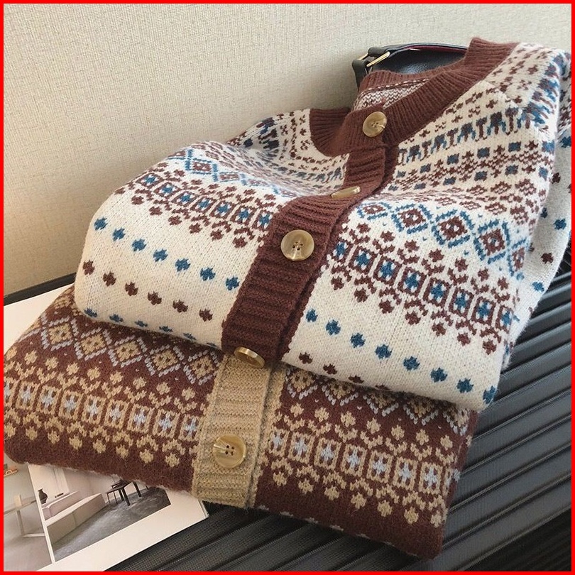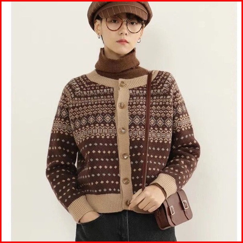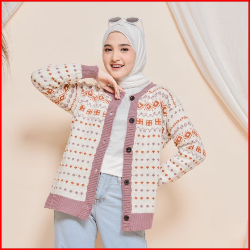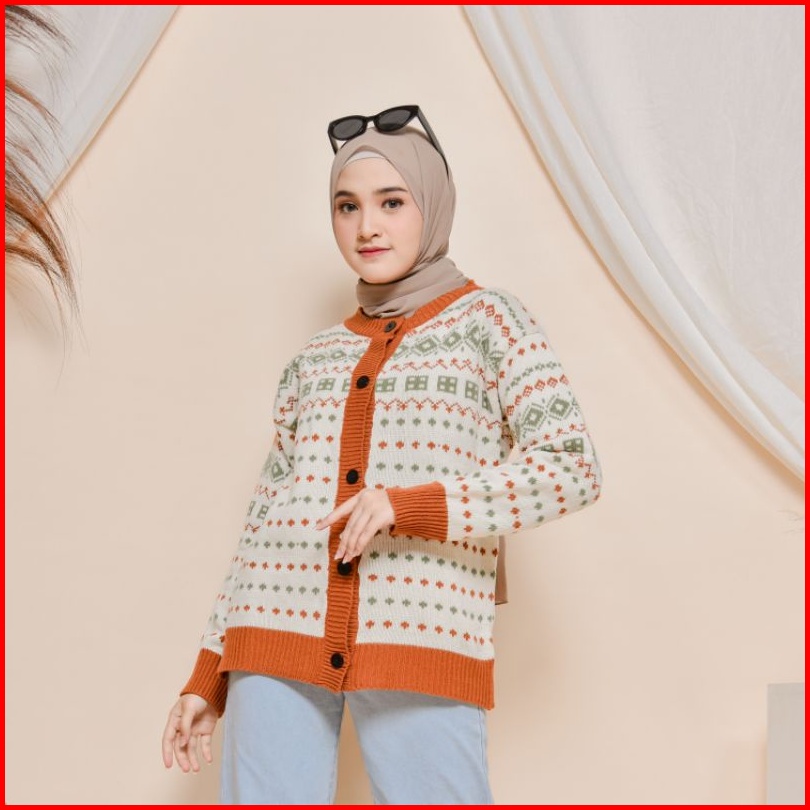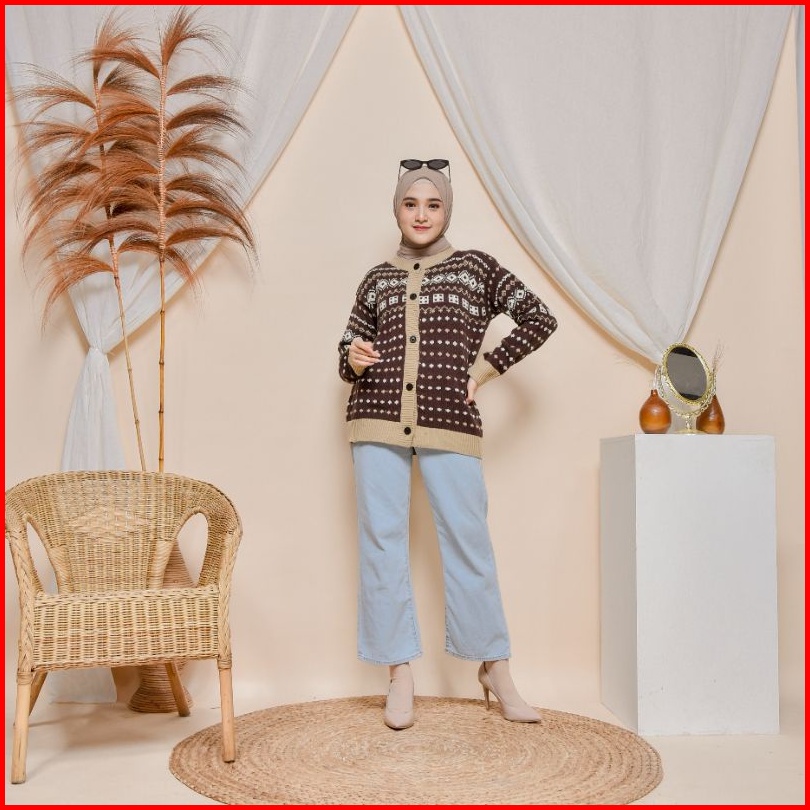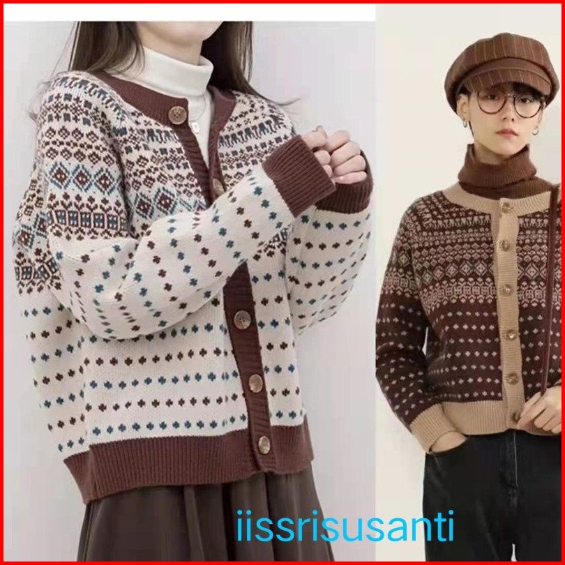 Cardigan Rajut Motif Tribal Bunga Atasan Rajut Wanita Tribal