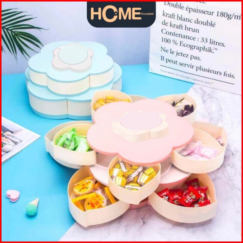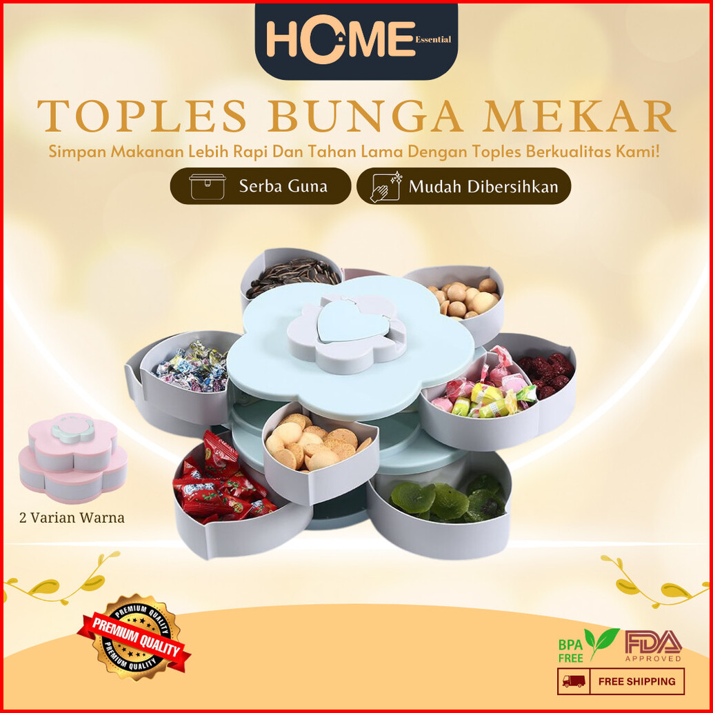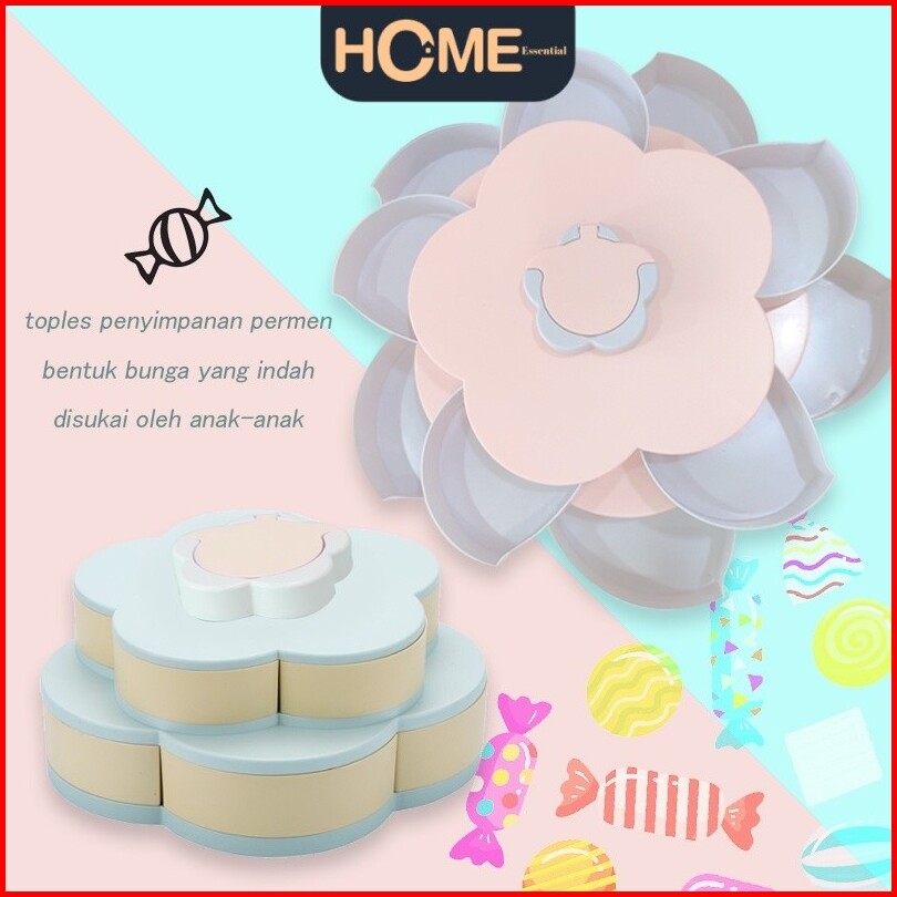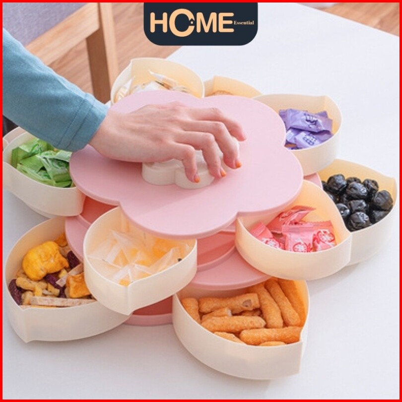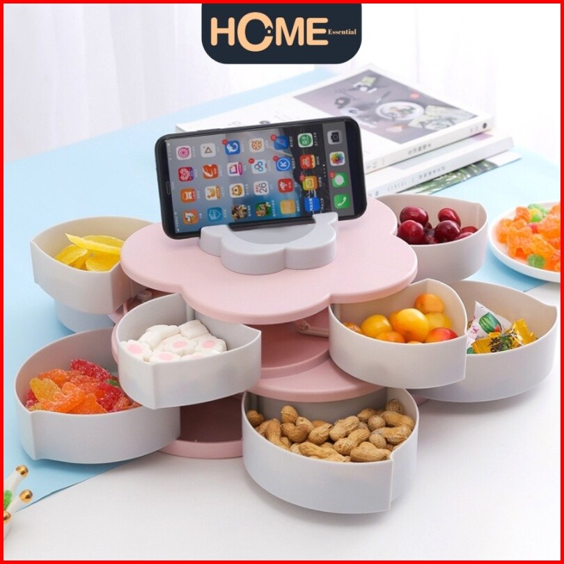 He Home Essential Toples Bunga Mekar Rotating Putar Kue Candy Snack Buah Tingkat 2 Susun Tempat Dudukan Hp