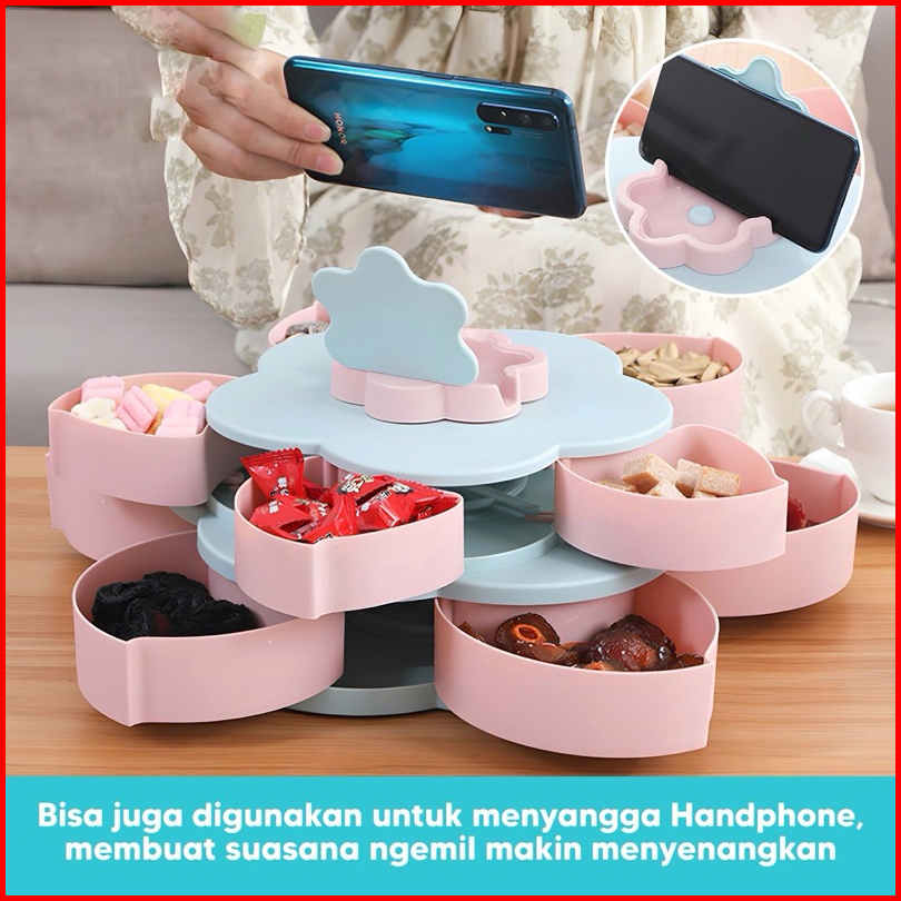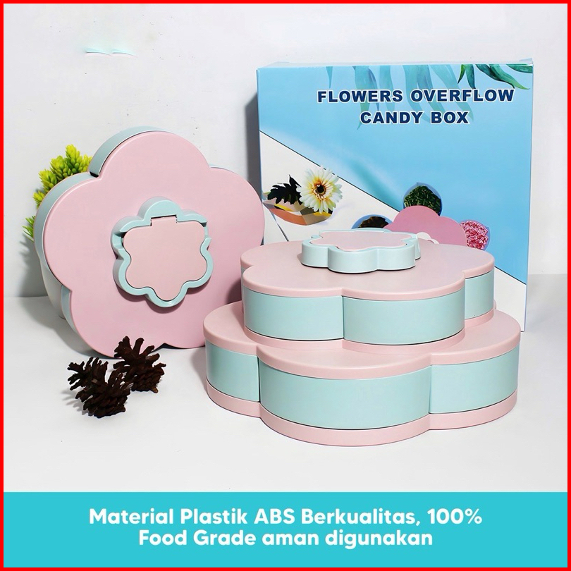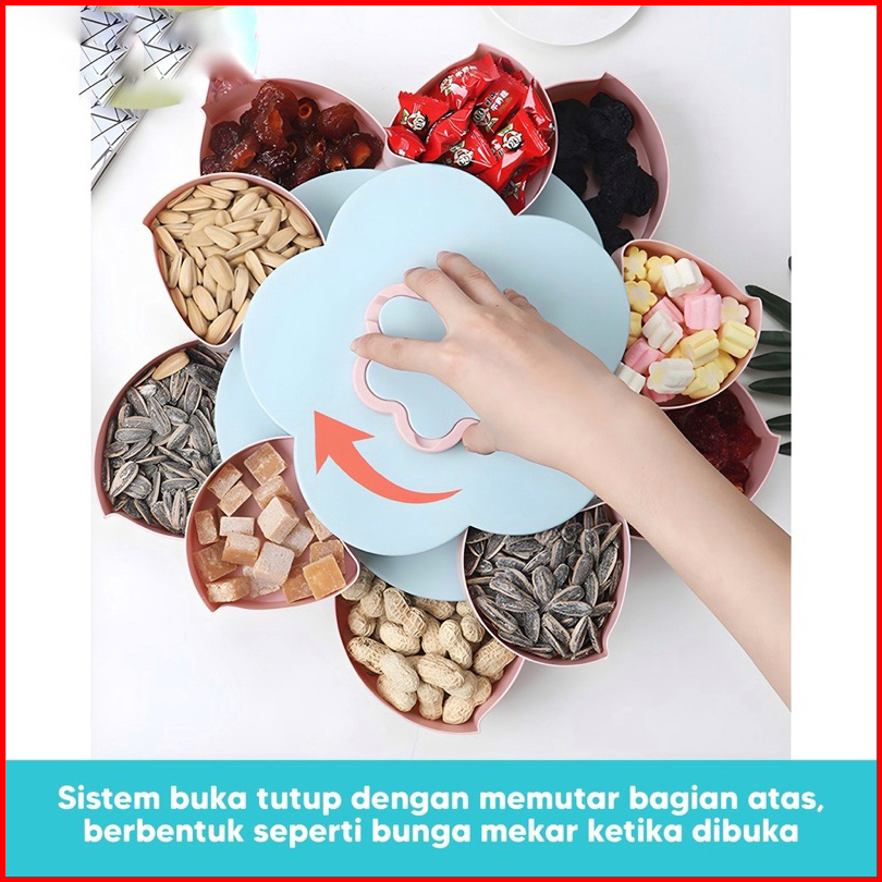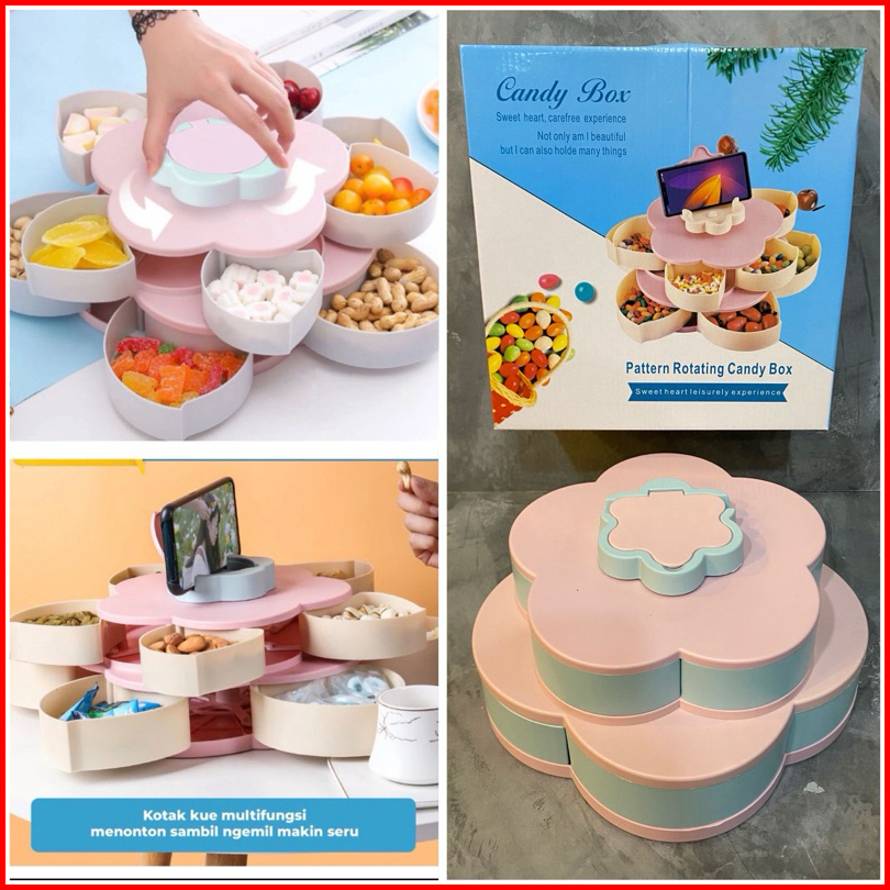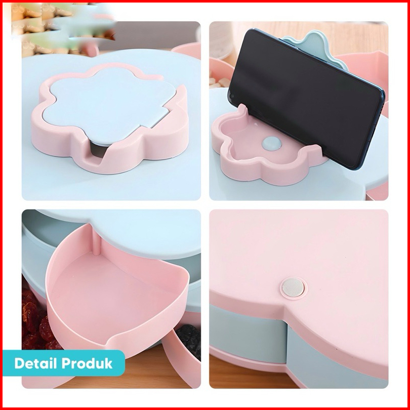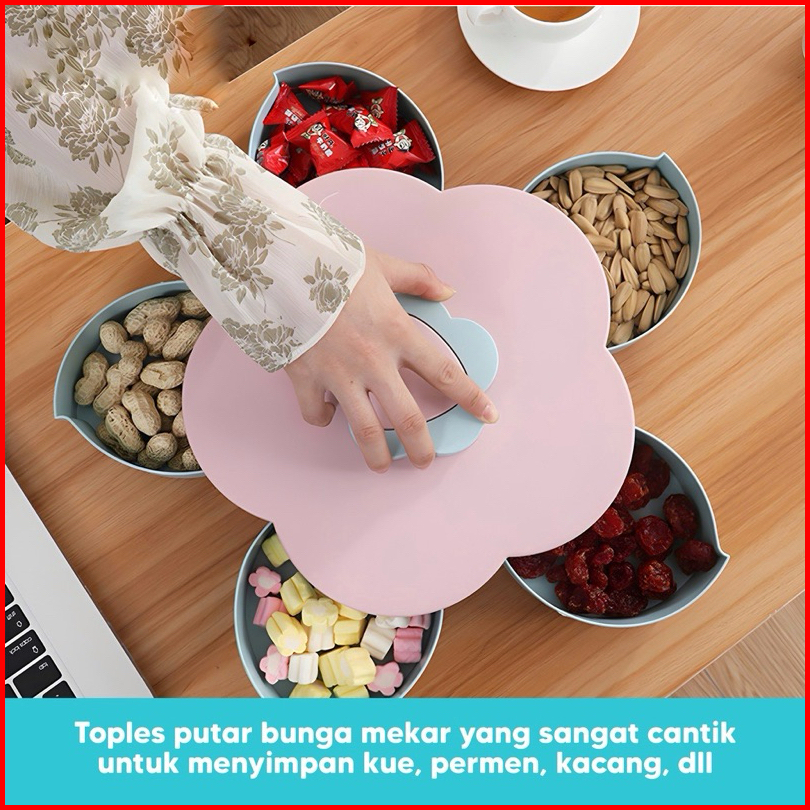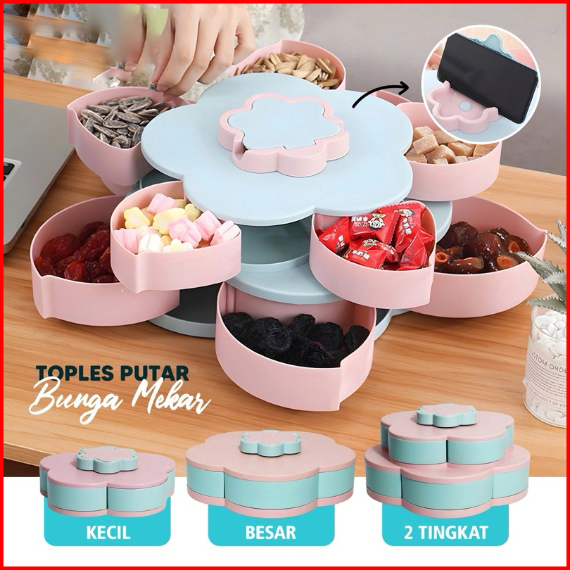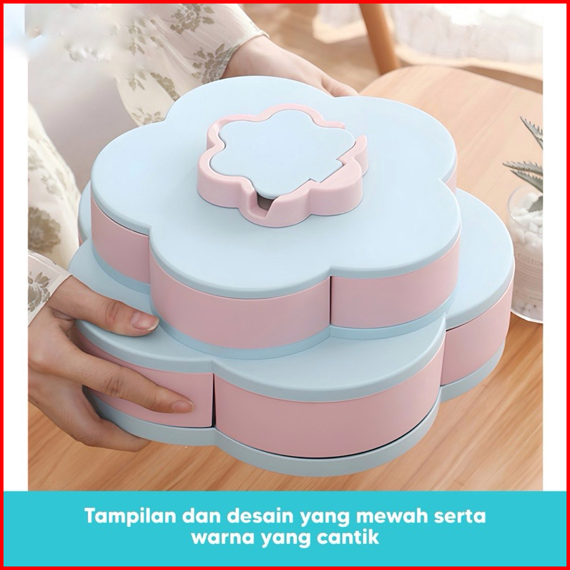Toples Putar Bunga Mekar Flowers Candy Box Toples Putar Kue Snack 2 Tingkat Toples Lebaran