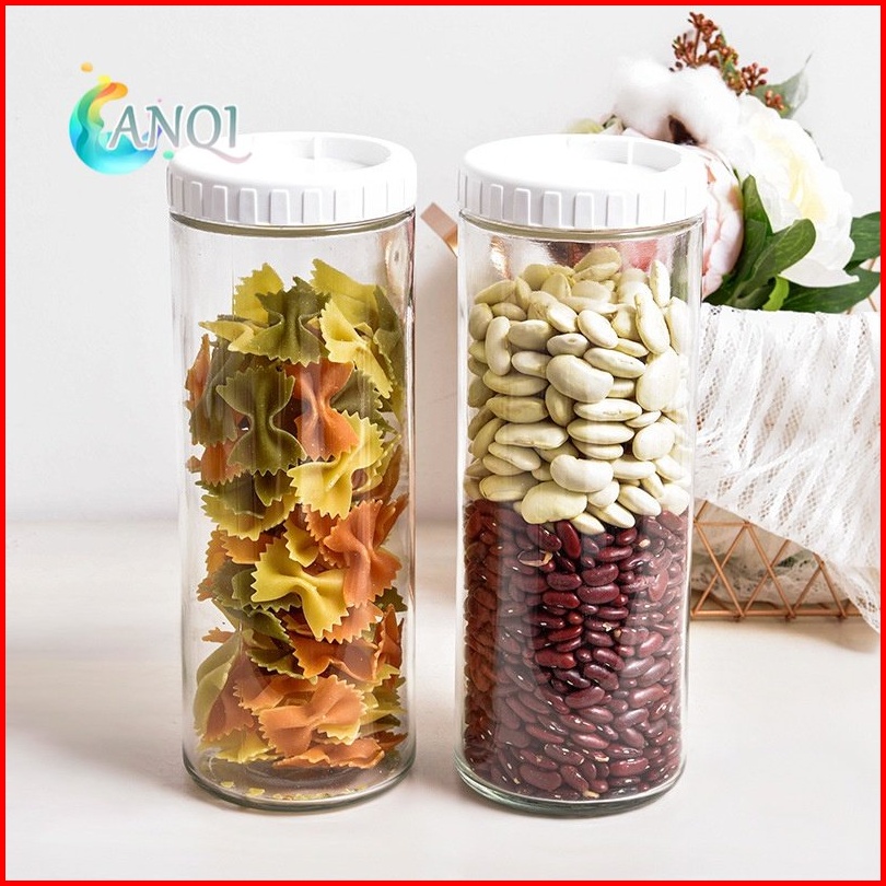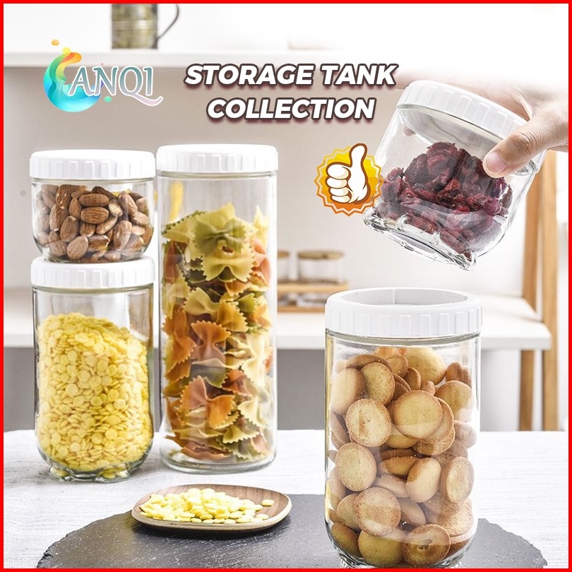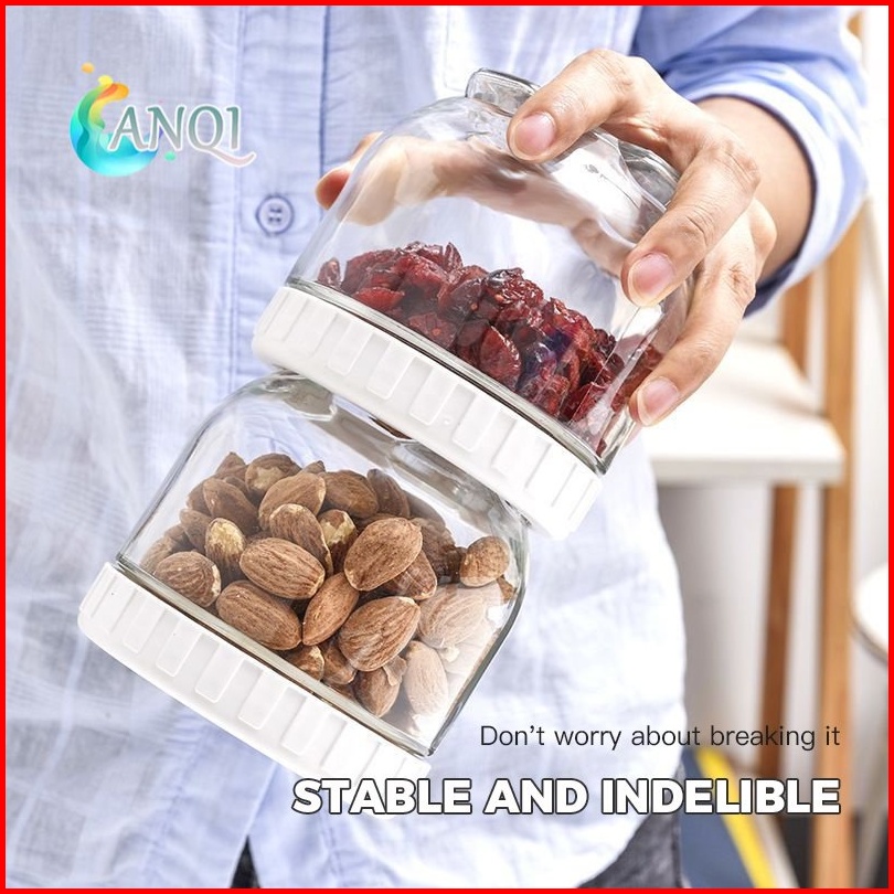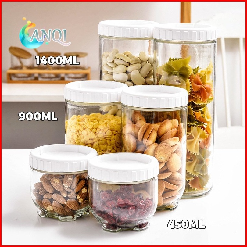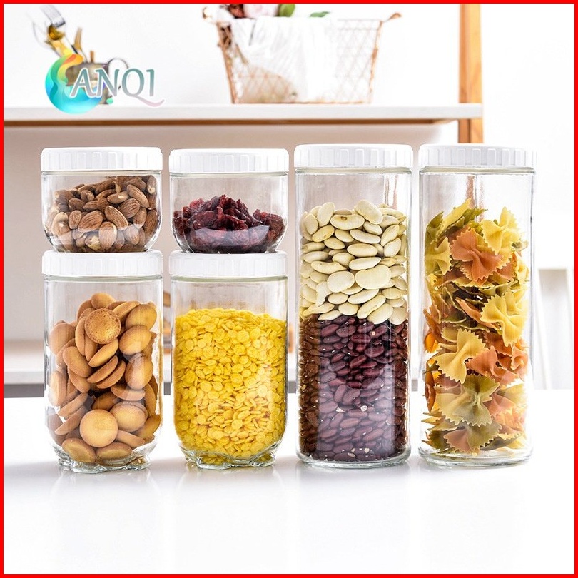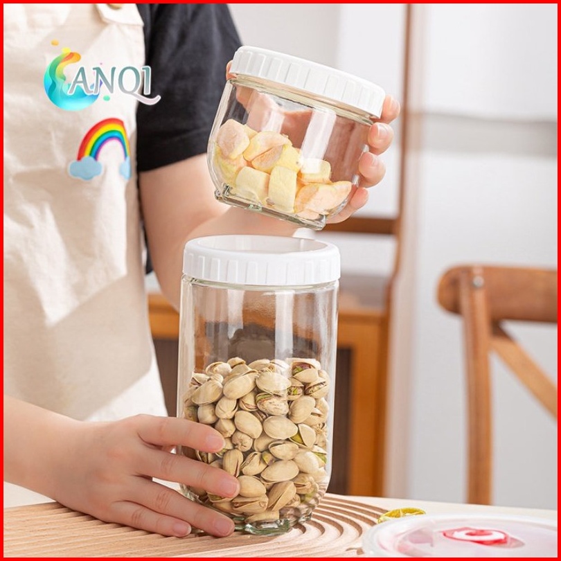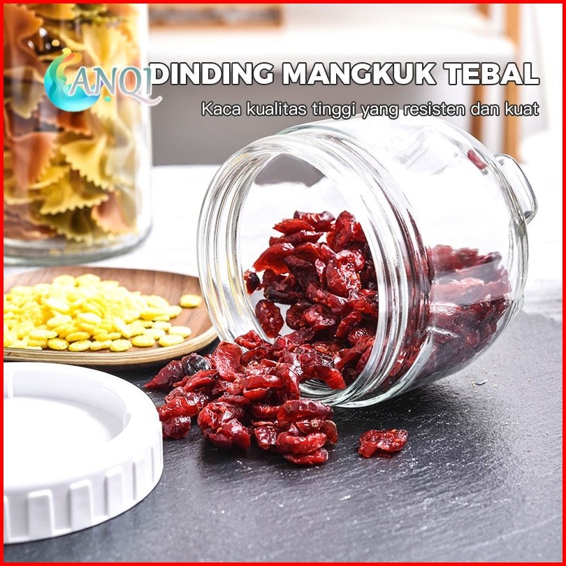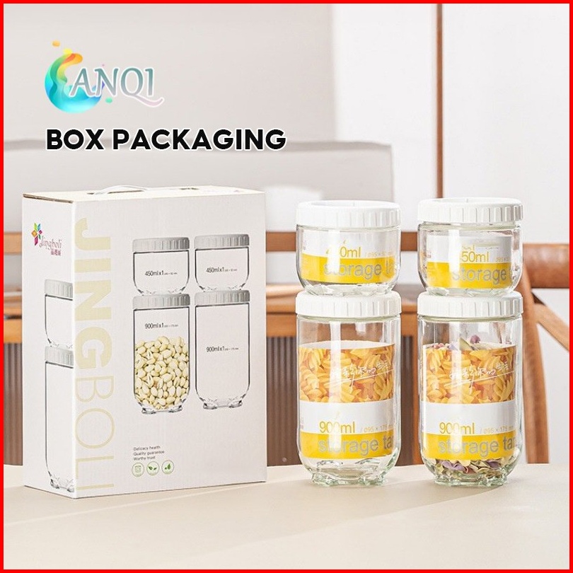 Anqi Shop 4 In 1 Toples Kaca Set Canister - Toples Kaca Tutup Bamboo Kotak Toples Bumbu Toples Makanan Toples Snack Topl