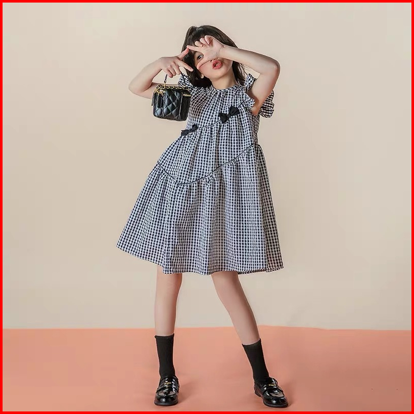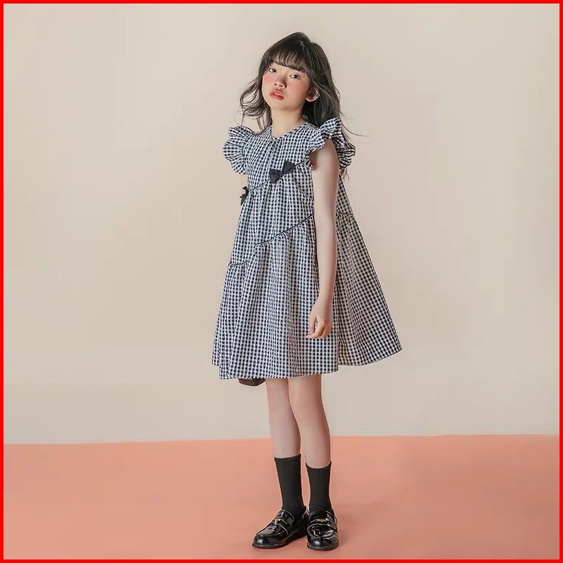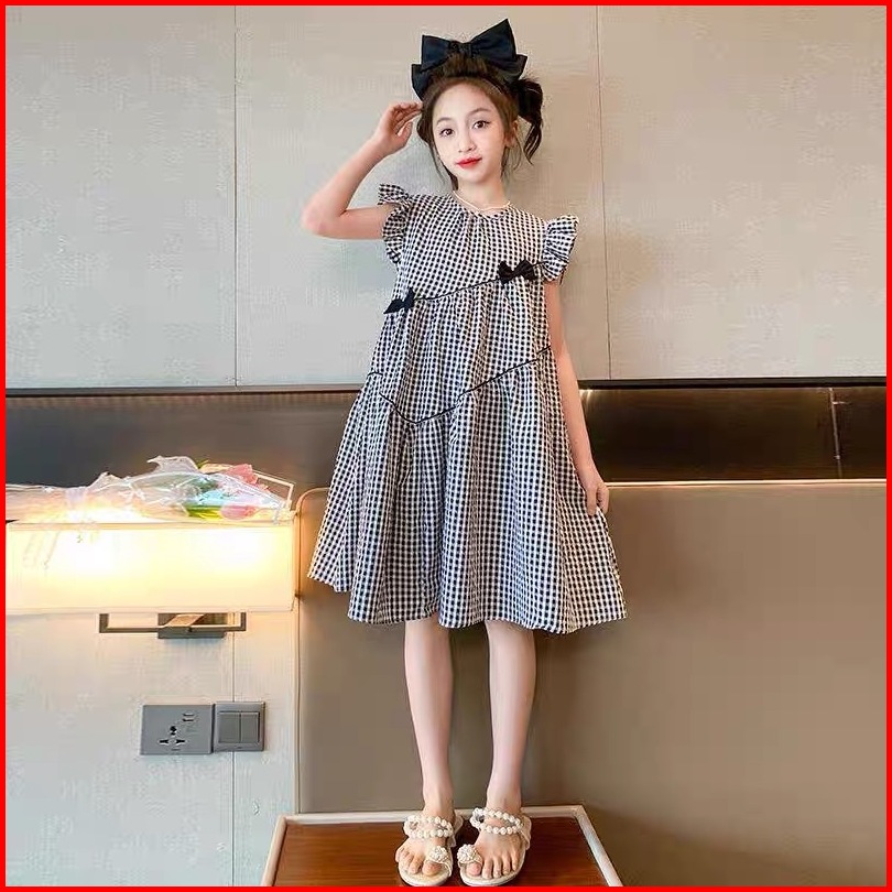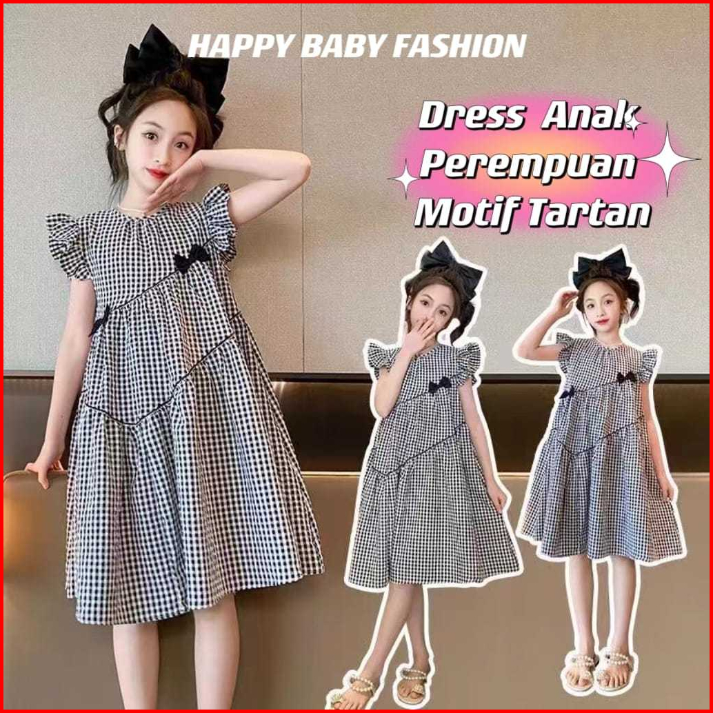 Happy Baby 5-15tahun Dress Anak Perempuan Motif Tartan Qz-155