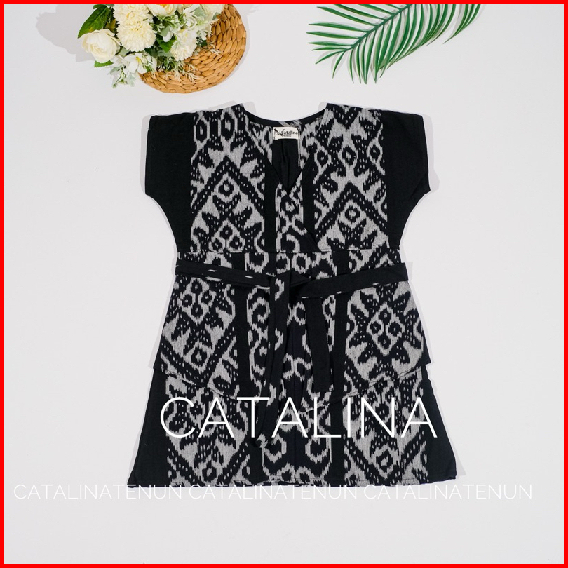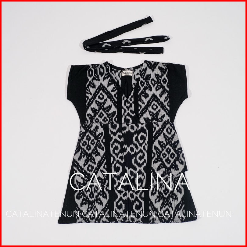 Baju Tenun Anak Desty Dress Black Full Tenun