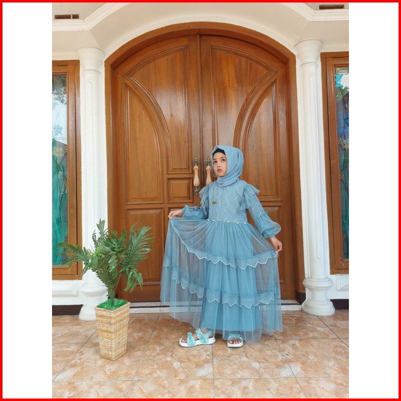 Lenora Mutiara Dress - Gamis Pesta Anak - Gaun Anak Perempuan - Gamis Brukat Anak