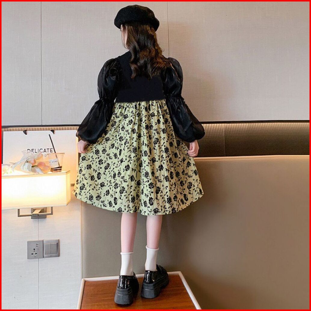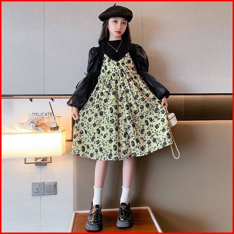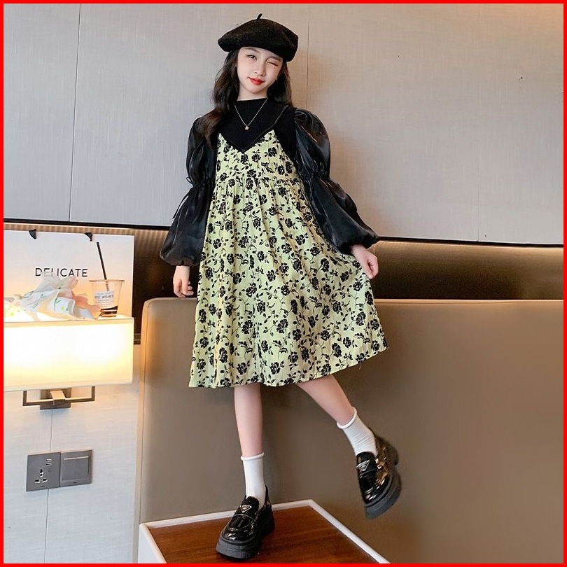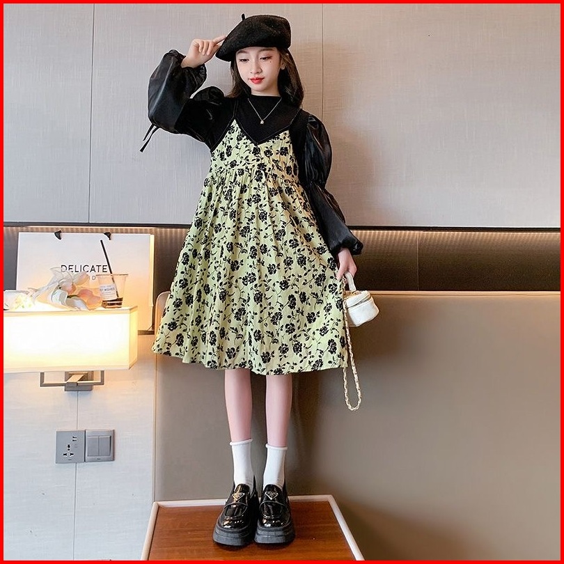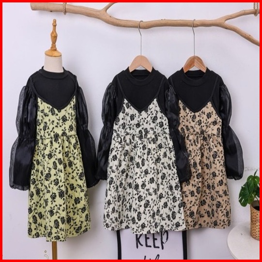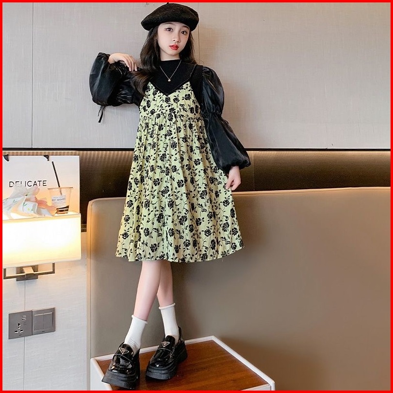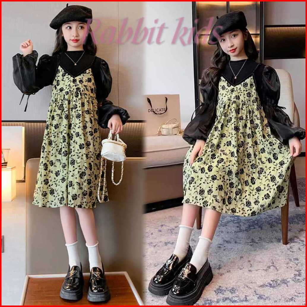 Rabbit Kids Dress Tanggung Anak Perempuan Lengan Panjang Balon Korea Kekinian