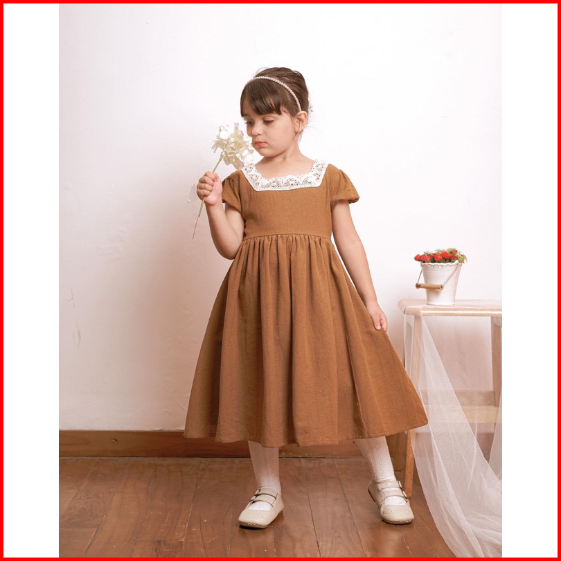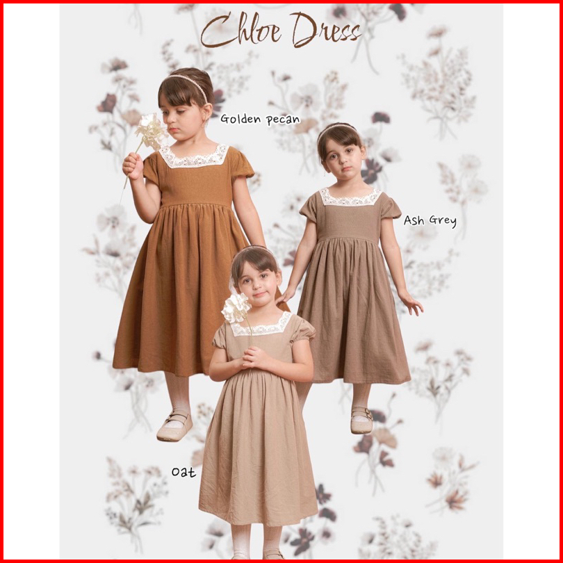 Chloe Dress Anak Perempuan Collarless Vintage Style Usia 1-9tahun By Littlesora