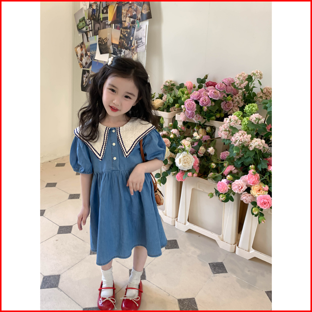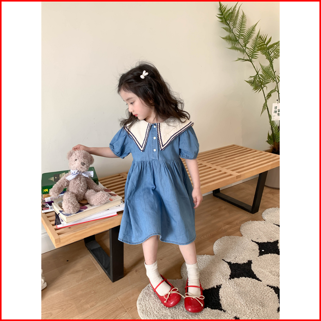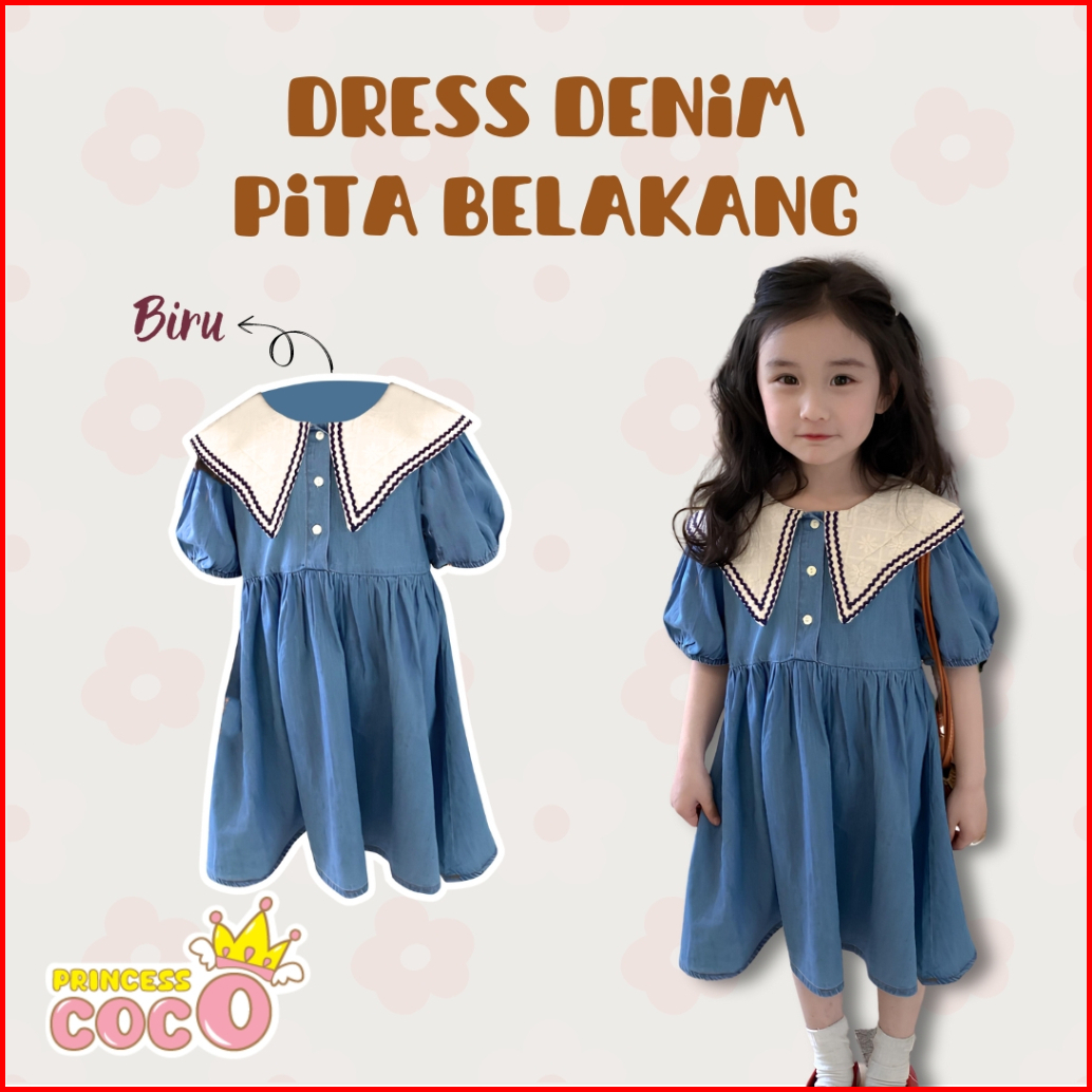 Princess Coco 1-8 Tahun Dress Denim Anak Perempuan Lengan Panjang Korean Style Casual Simple