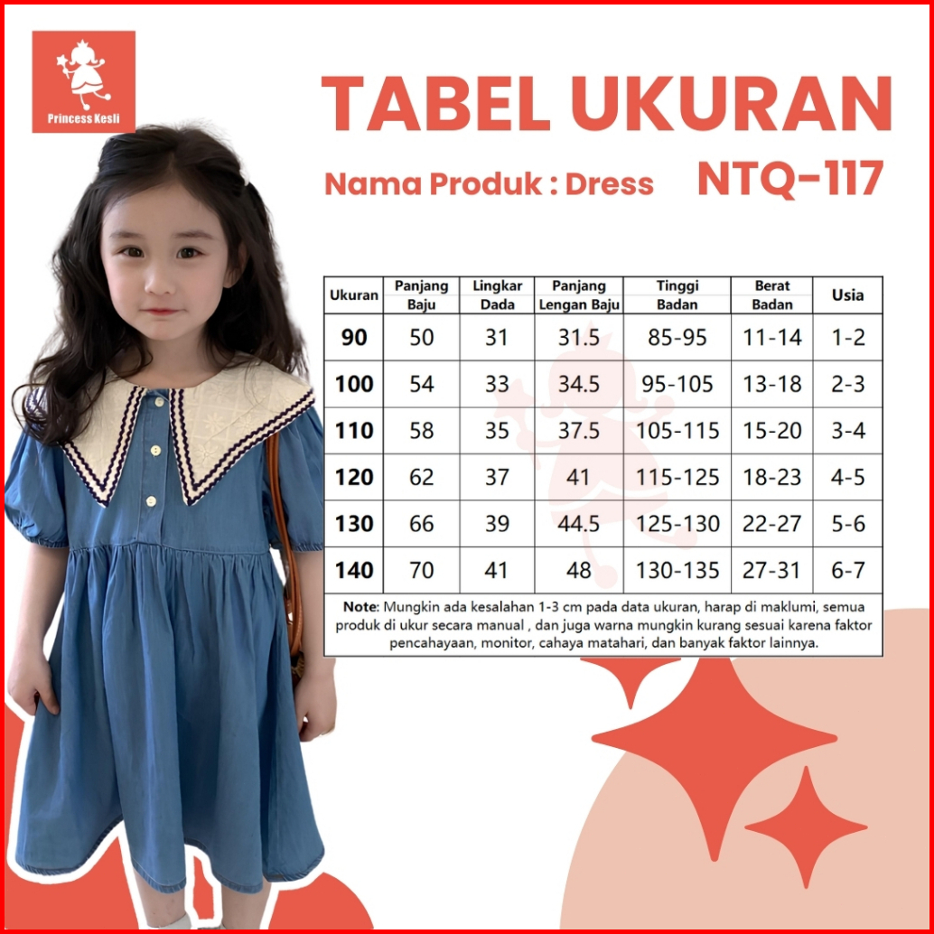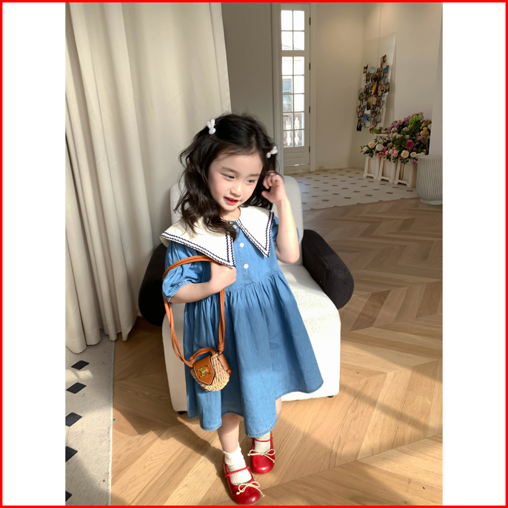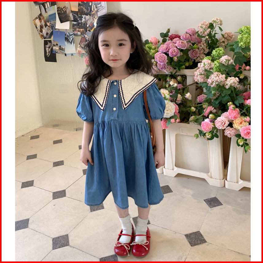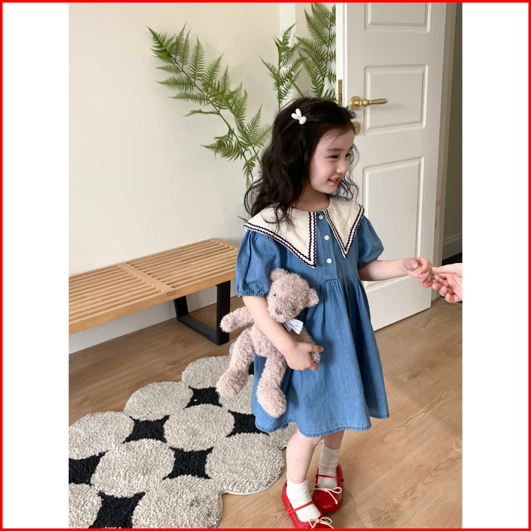 Princess Coco 1-8 Tahun Dress Denim Anak Perempuan Lengan Panjang Korean Style Casual Simple
