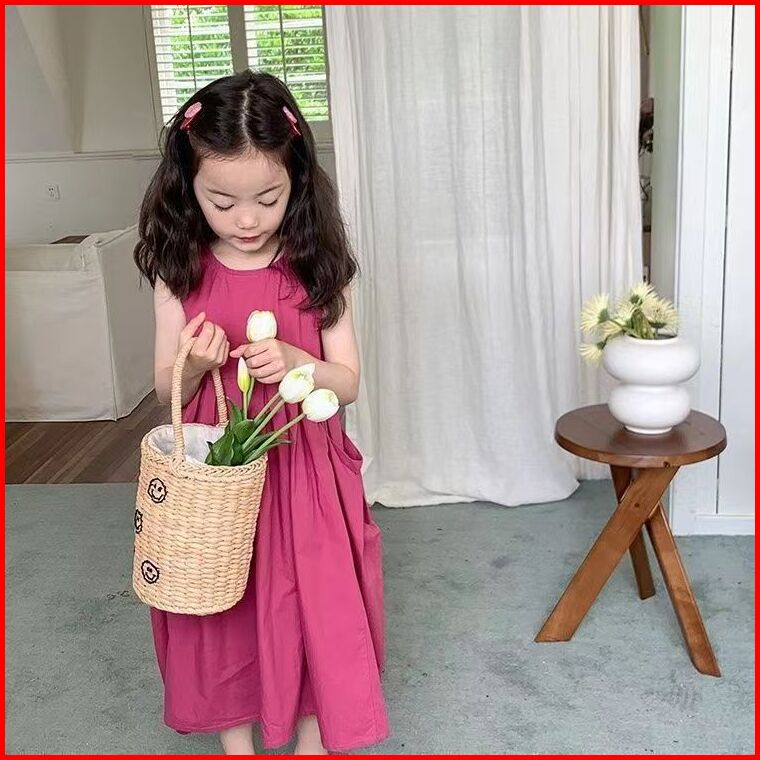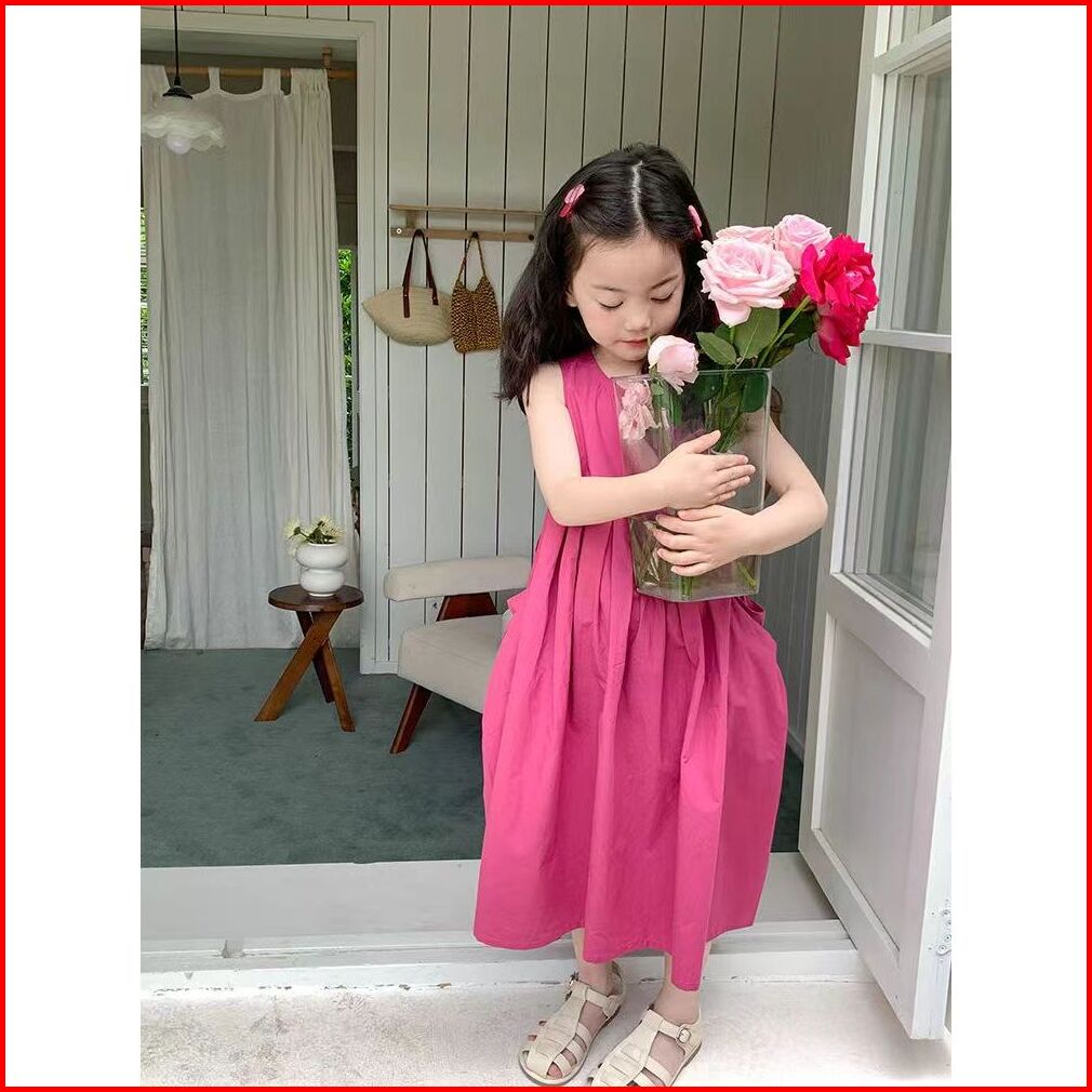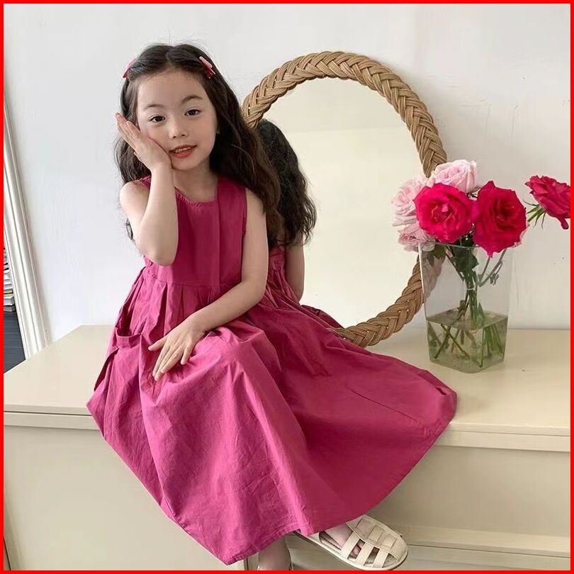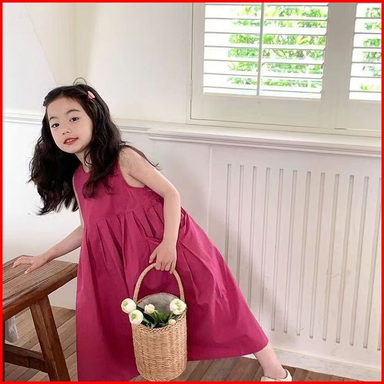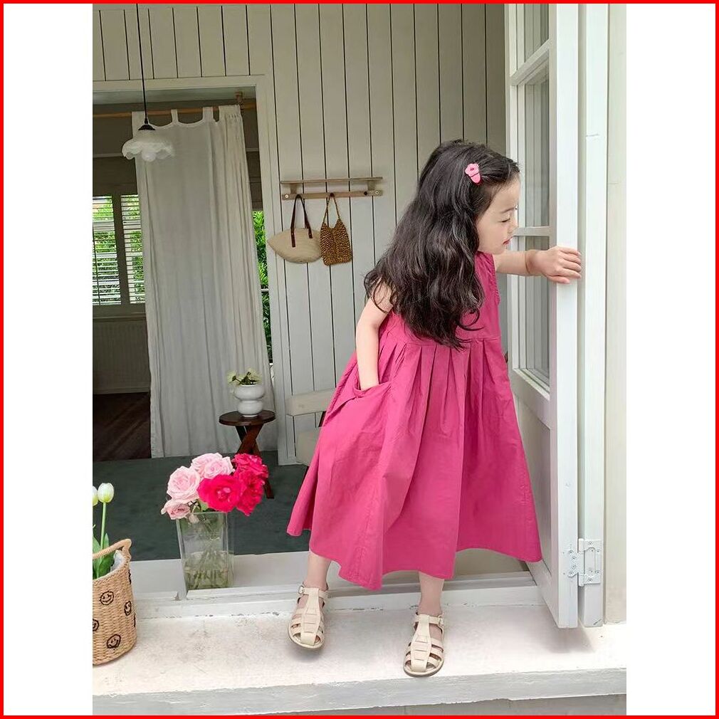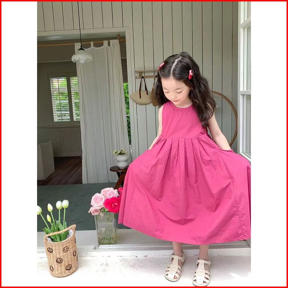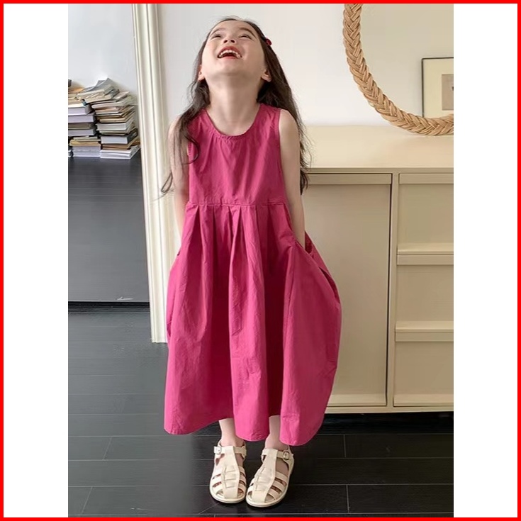Korea Style Dress Pricess Anak Perempuan Dress Panjang Tanpan Lengan Bahan Katun Baju Anak Gaun Anak Ootd Dress Style Te